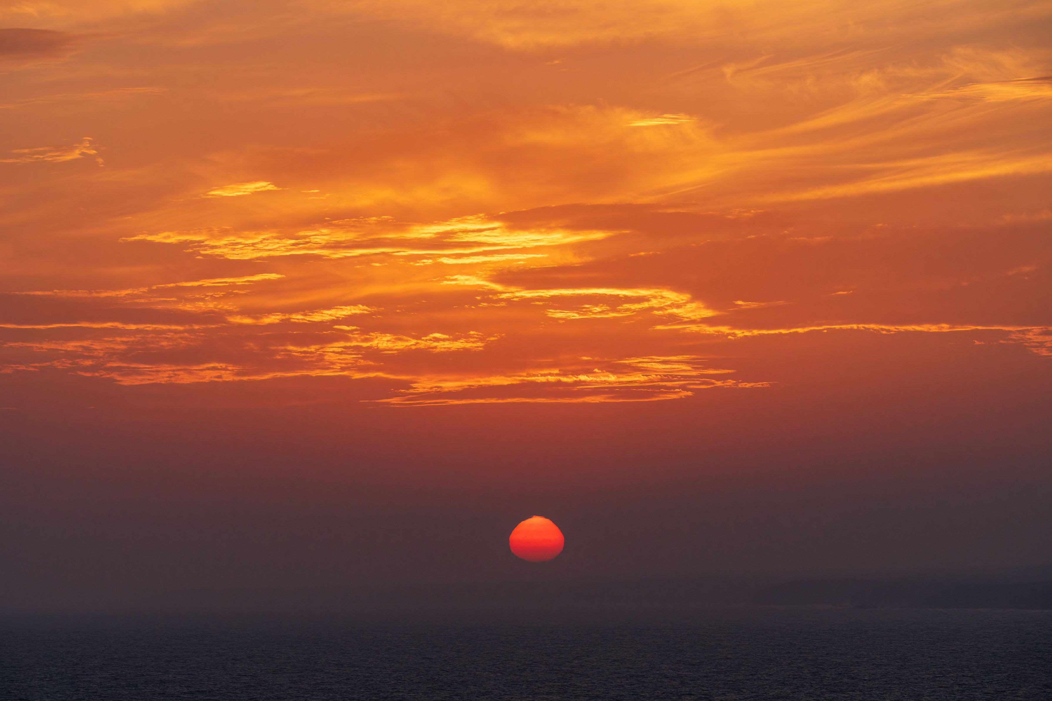 落石海岸からの一コマ。 先日の花咲線を撮った後、夕日が沈む姿を眺めていたら 沈みかけに夕陽が△形に見えました^^