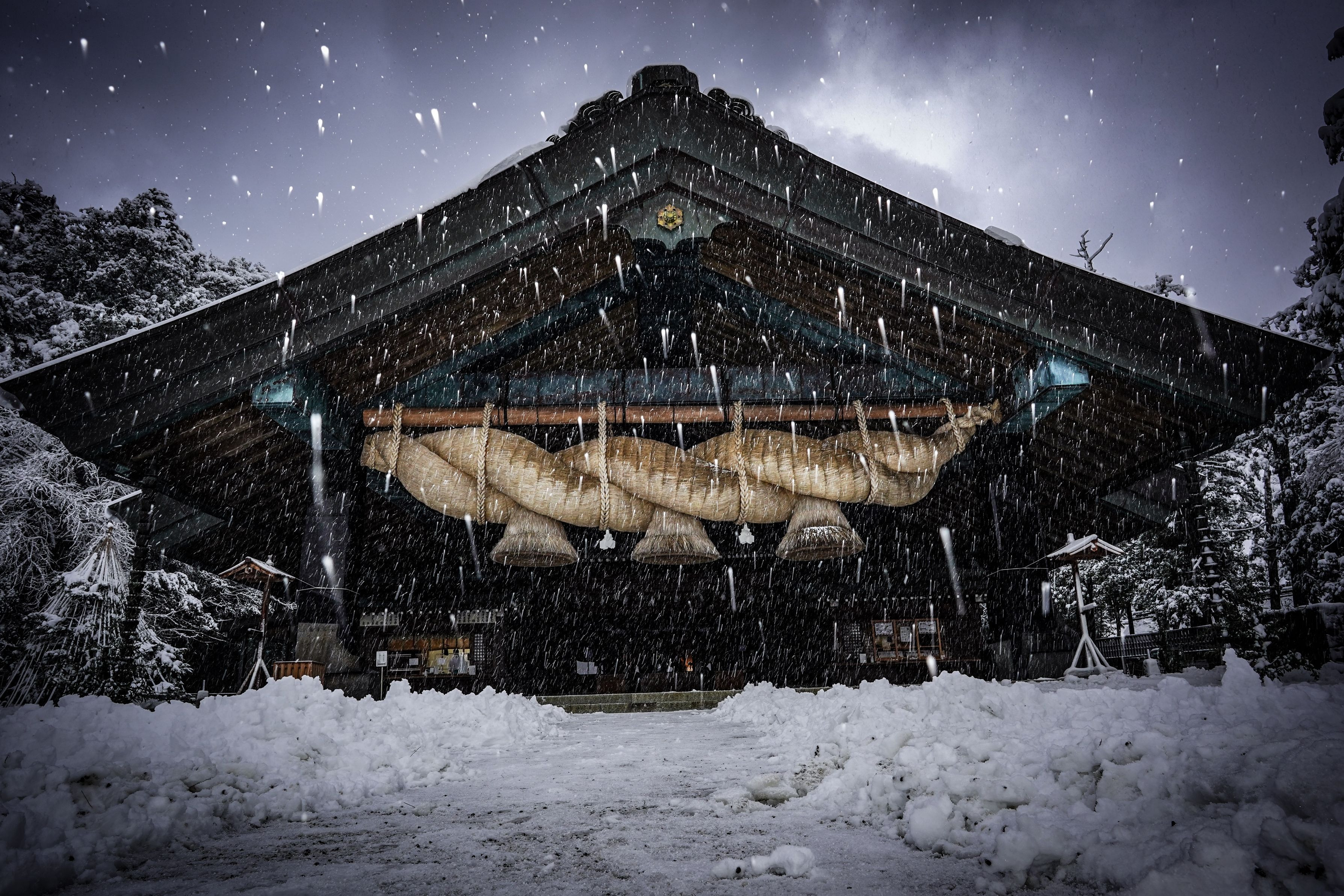 吹雪の出雲大社神楽殿