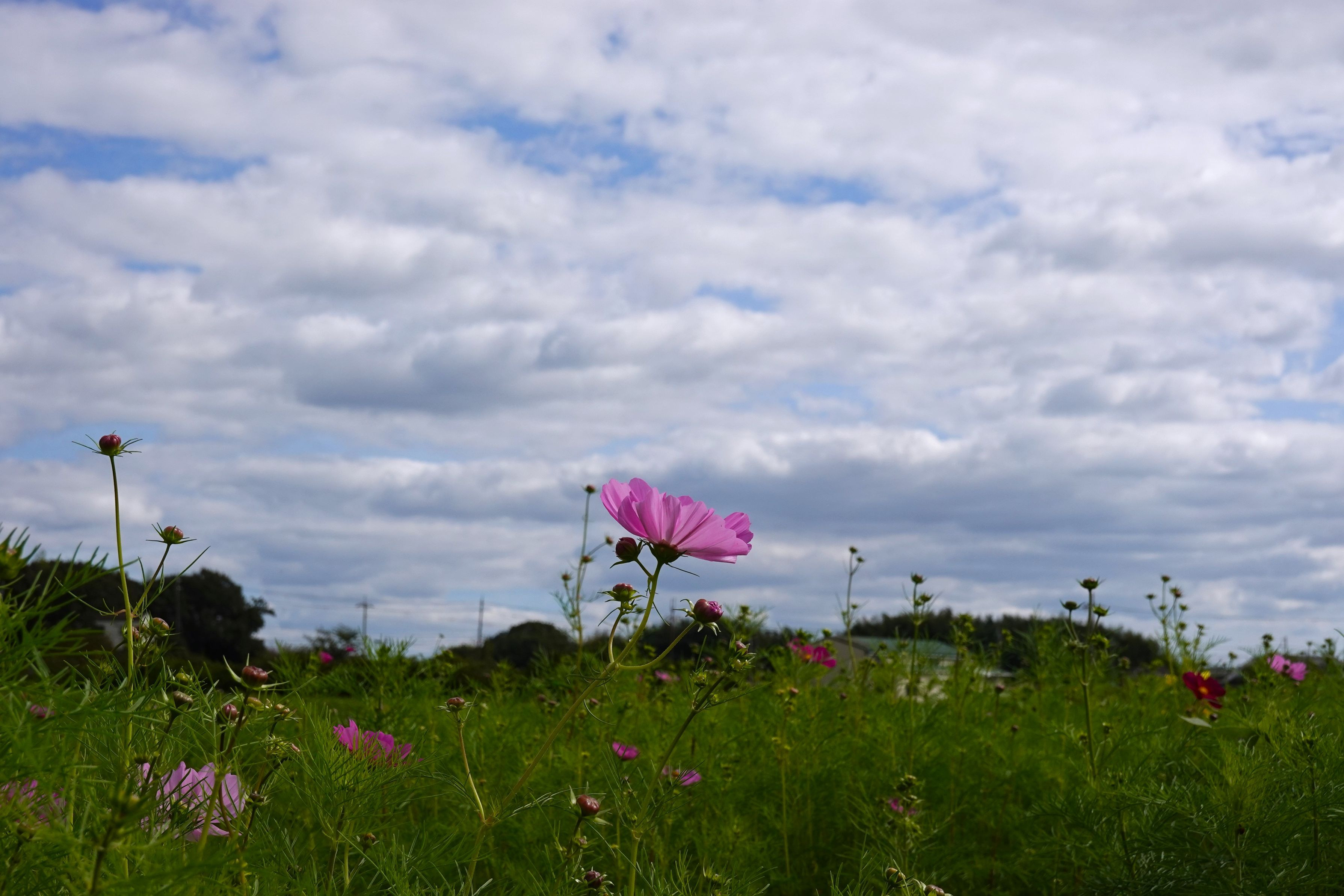 小野市立ひまわりの丘公園のコスモスの見頃はまだ先のようです。