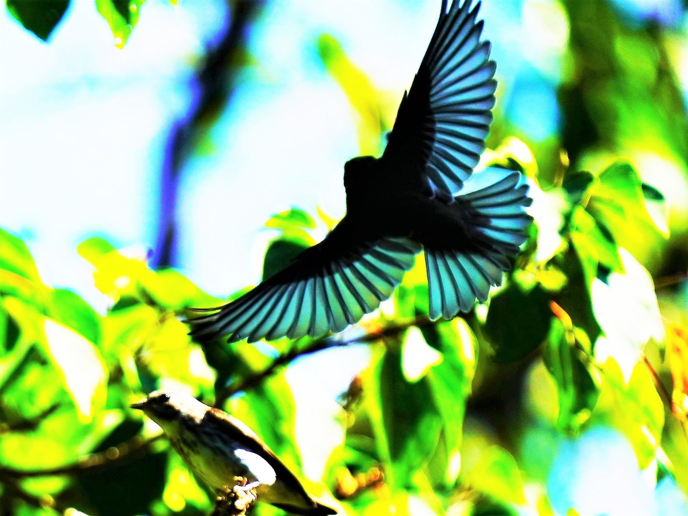 アカメガシワの実を食べにやって来てホバリング(^_-)-☆