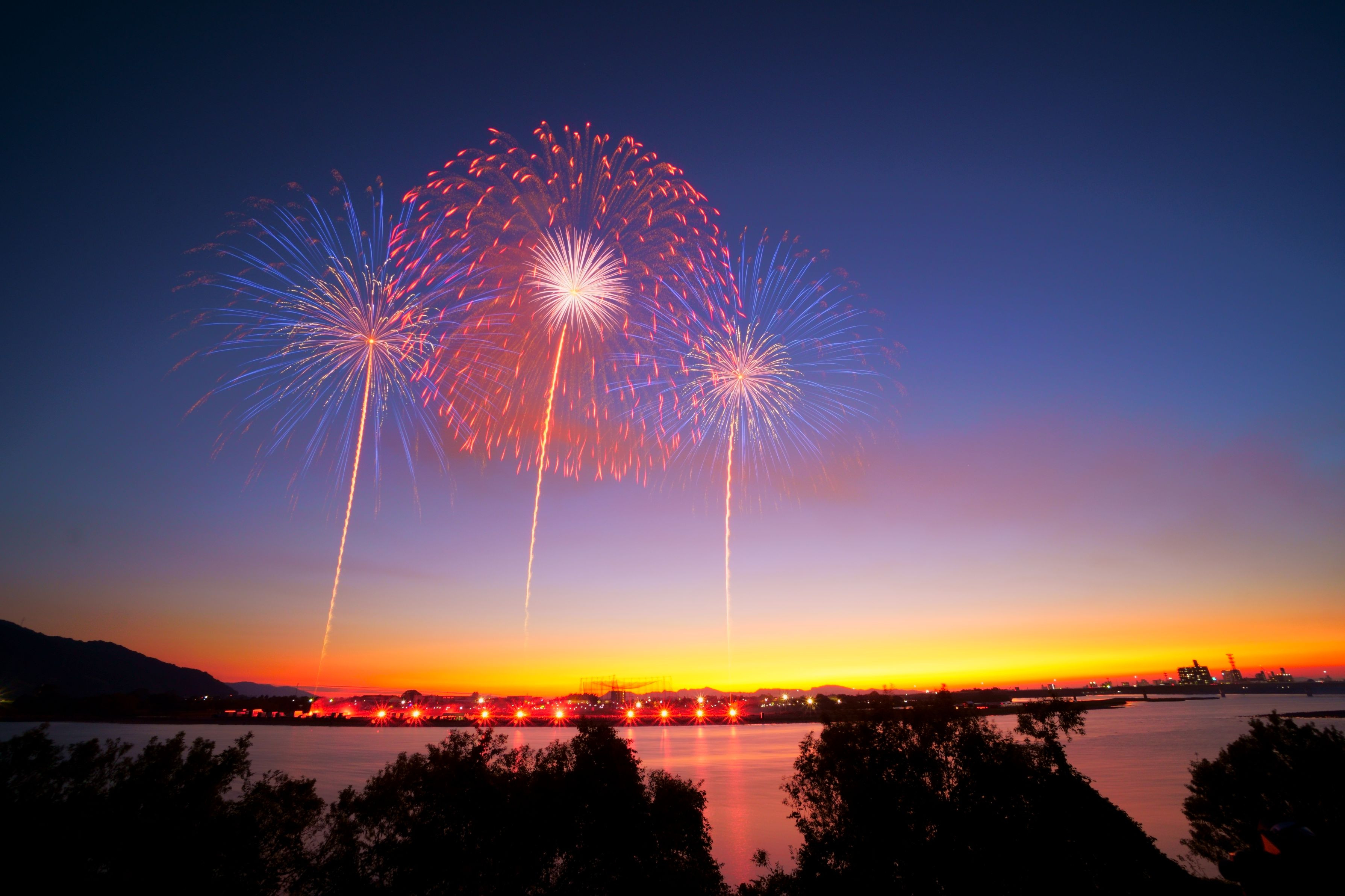 夕焼けと同時に花火が始まりました。