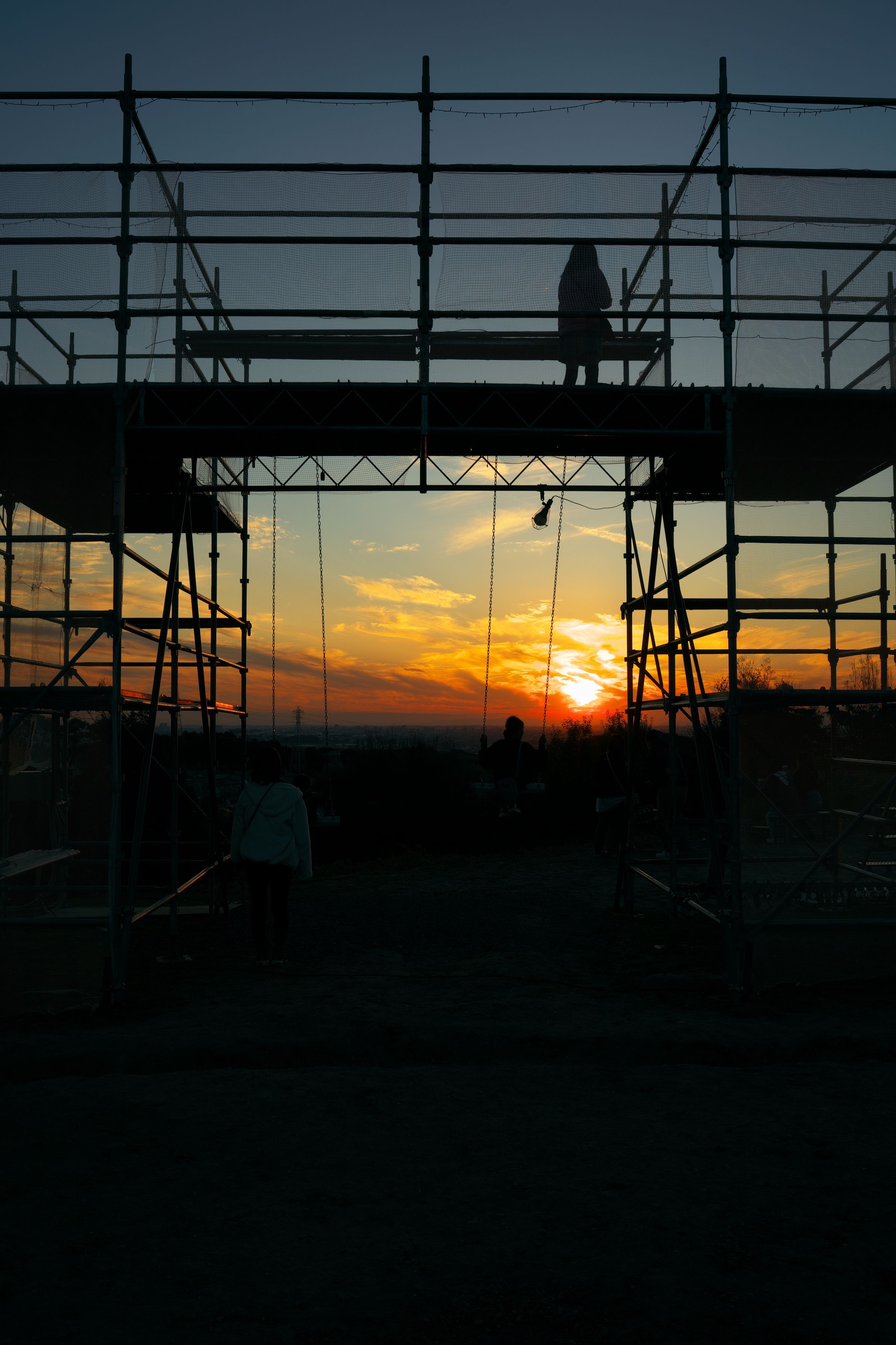 山の上の夕焼けでブランコ ぶら~ぶら