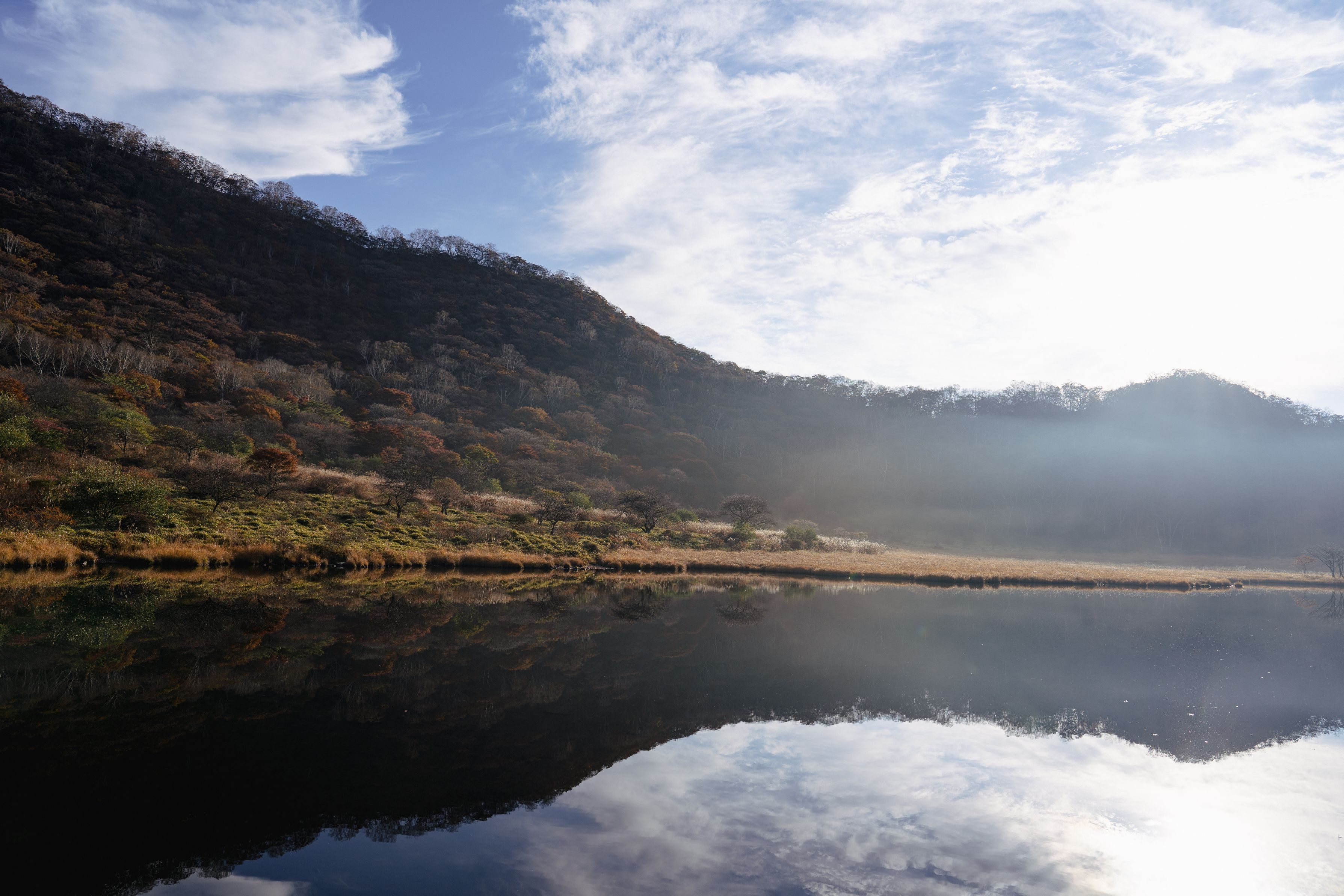 赤城山は紅葉がはやく、湖面に移る秋の山と秋の空を撮影してきました