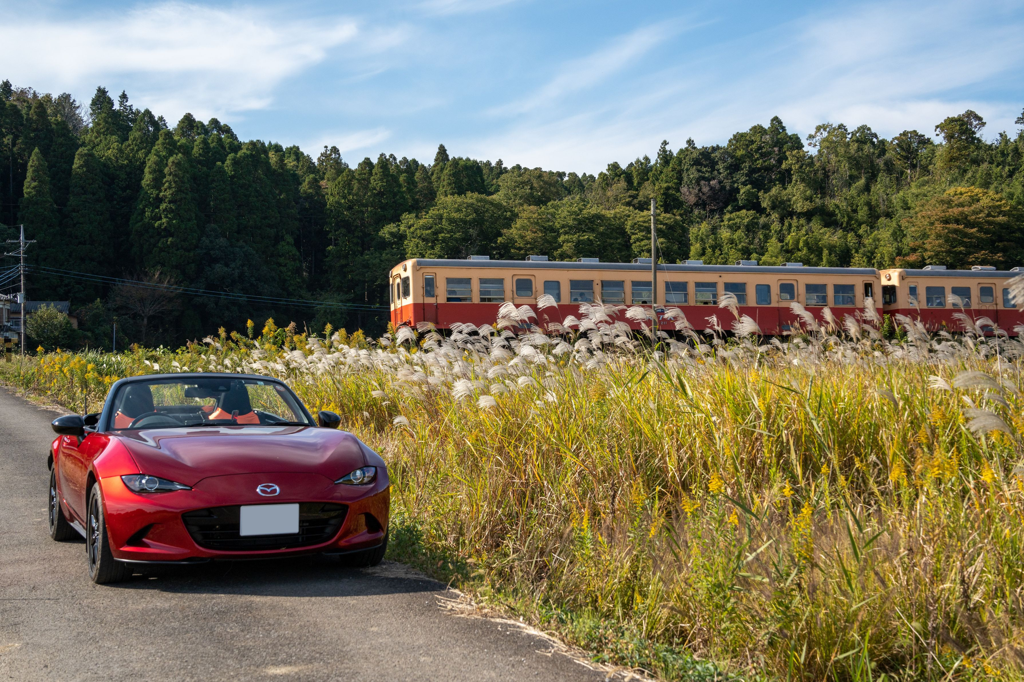 オープンカー購入を機に、クルマと美しい景色のコラボを残したいと思うようになりました。また、小さいころから鉄道が好きで、関東近郊のローカル線に乗るのも楽しみです。車両だけではなく駅舎にも趣があることに気付いたりして興味は広がるばかり。カメラが楽しみをどんどん教えてくれますね。