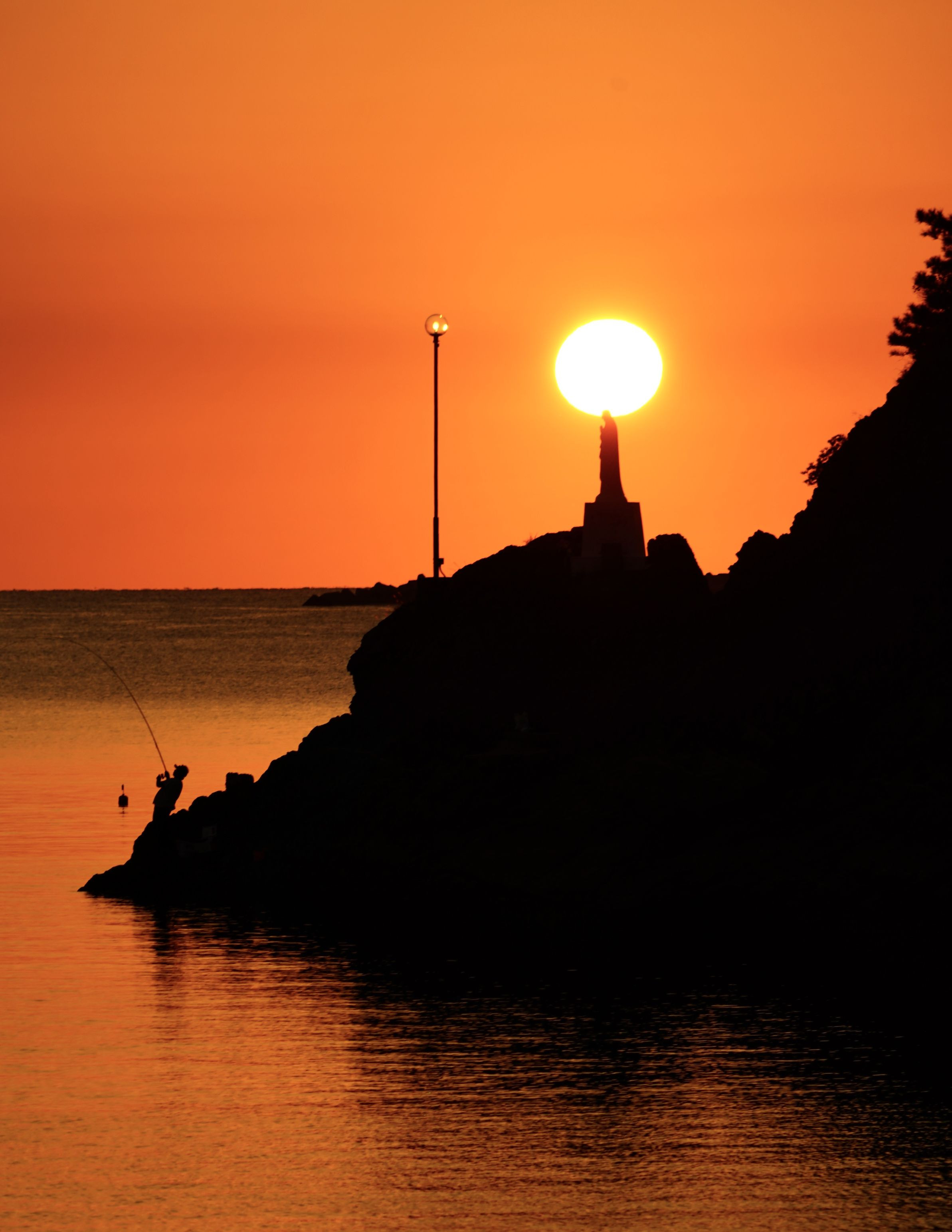 天草・崎津マリア像でこの直後、夕日がダルマになりました。