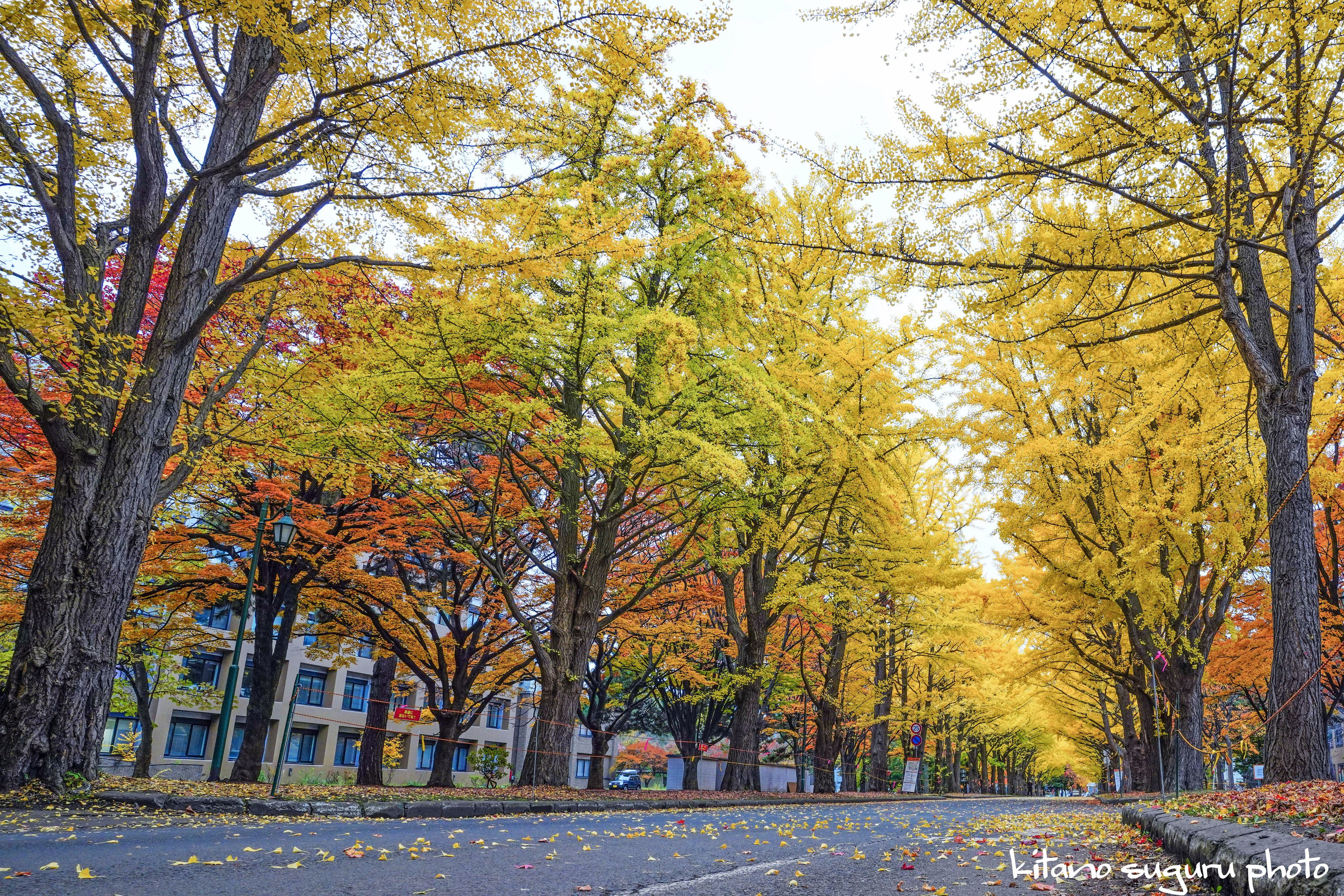 今年は北大銀杏並木道はコロナの影響で普通時間帯は通行制限が掛かるので、 朝早く行って来ました。 時期的には丁度良かったですね。 ついでに北大構内の紅葉時期なので撮って来ました。