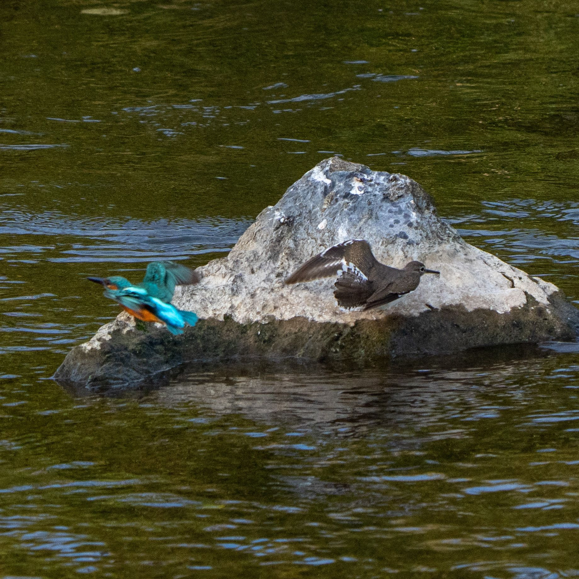 たまたま、カワセミとイソシギが同時に飛び立つところを捉えることができましたが・・・ピントがあってませんでした・・・・。残念