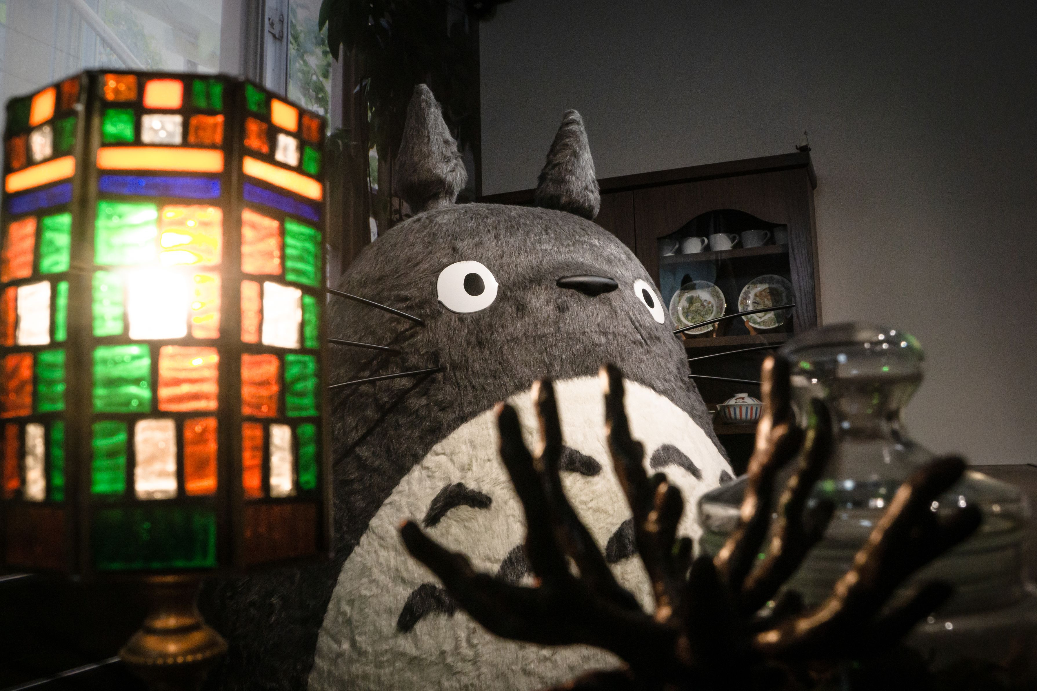 ジブリパーク「ジブリの大倉庫」内 カウンターの向こうにトトロがいました。 何か喫茶店のマスターっぽい雰囲気が出ていたので笑