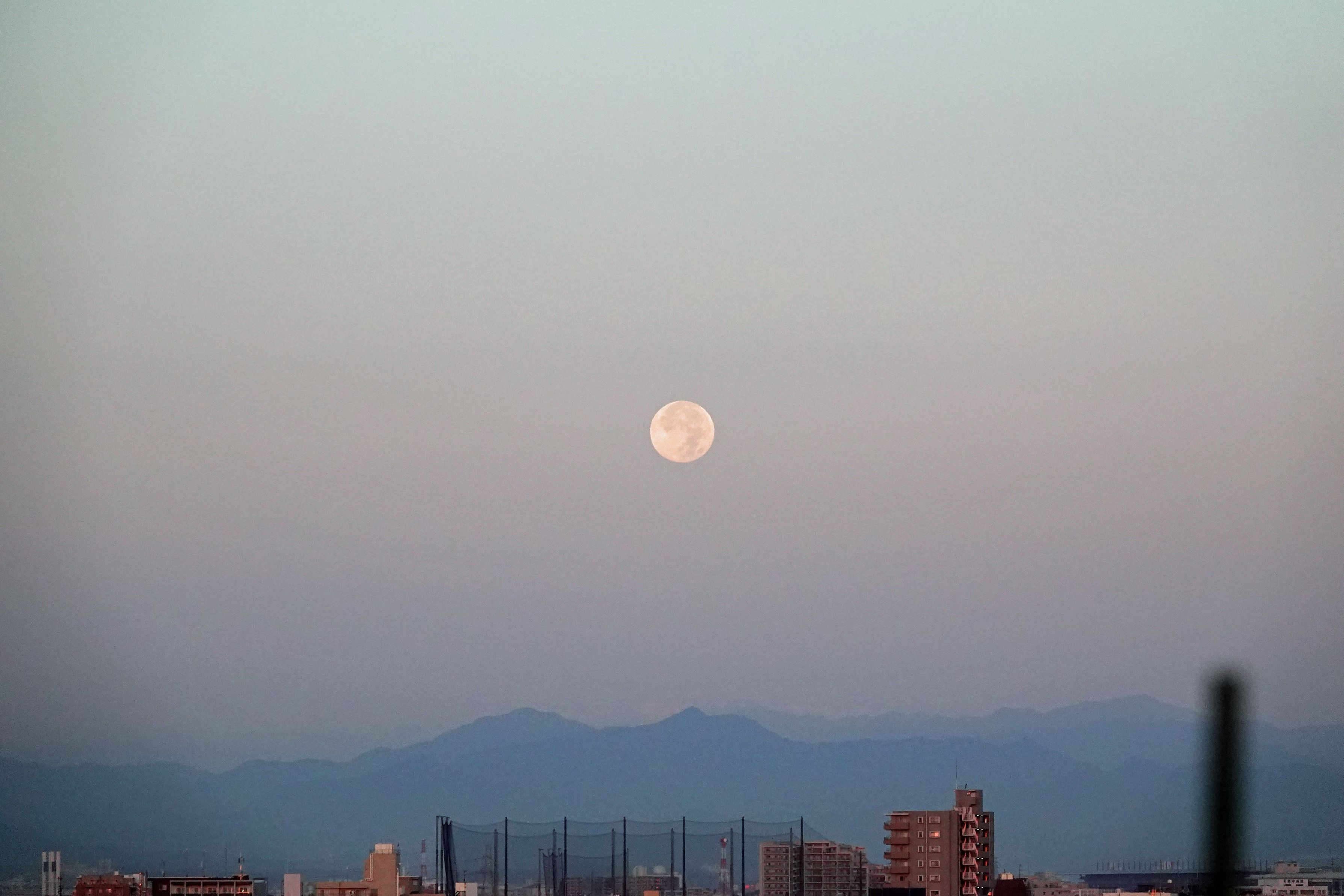 今朝、西の山に沈む。
