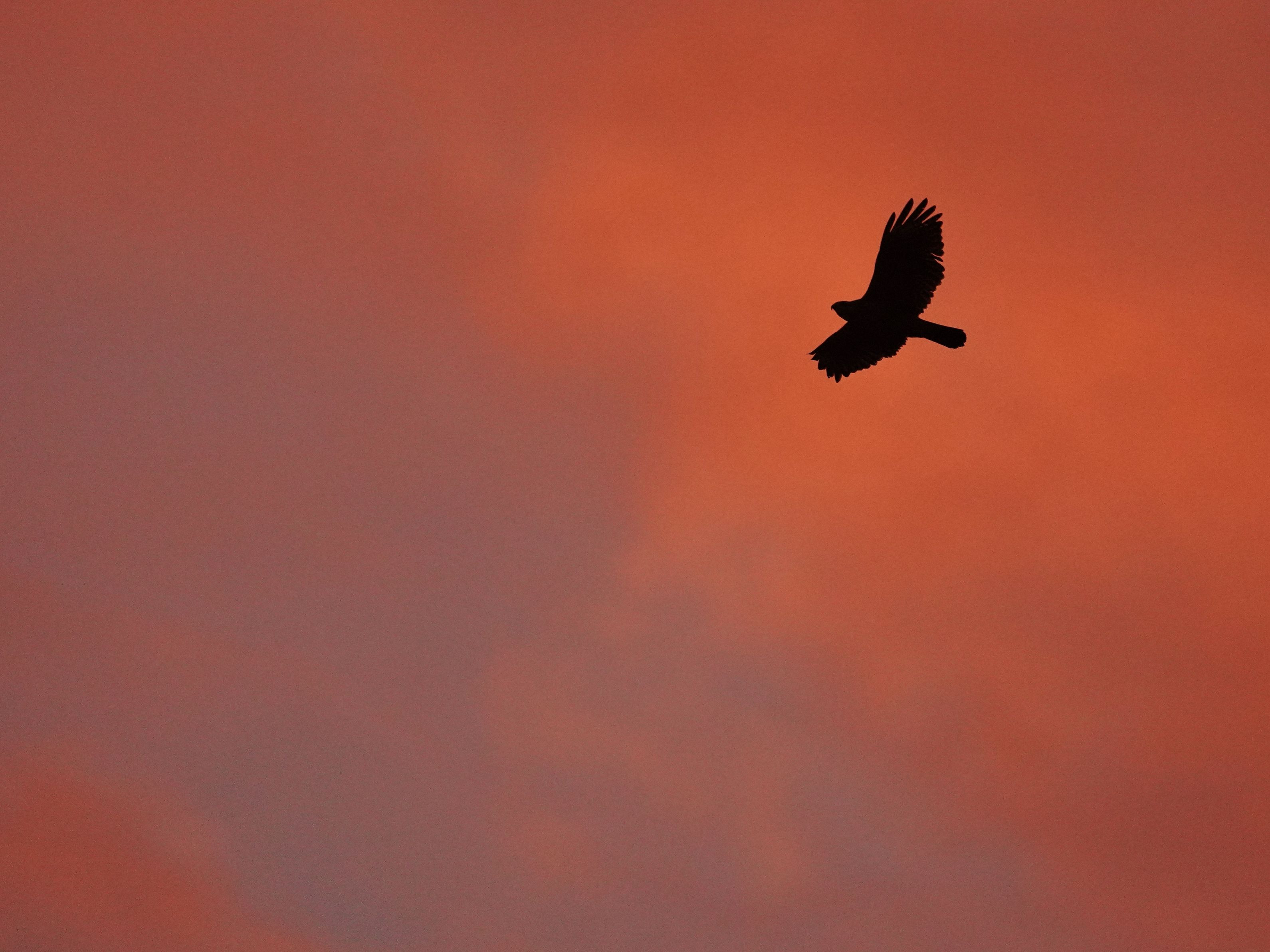 朝焼けがきれいでした見惚れていたらノスリが現われたので急ぎカメラを持ち出しなんとか間に合いました