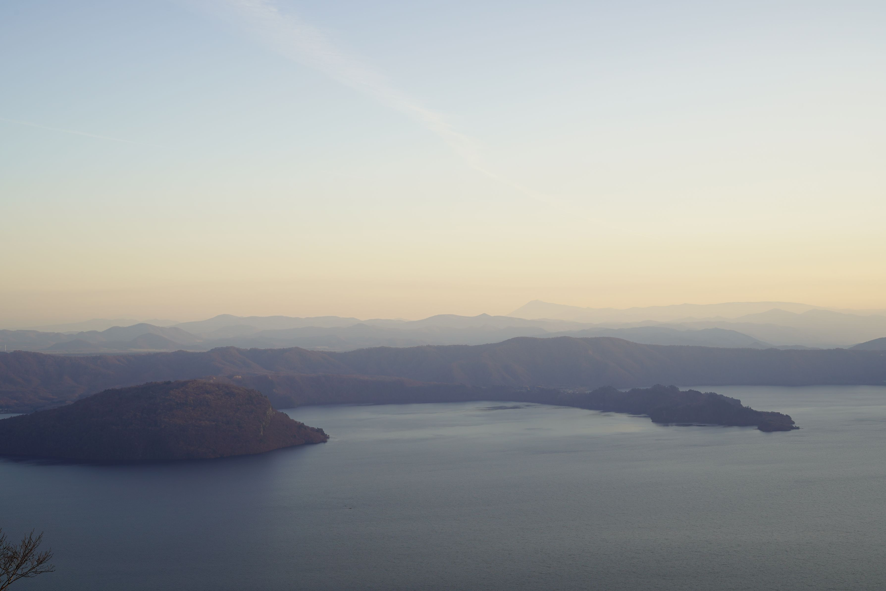 十和田湖の北側から。 日が暮れそうで、急いで撮りました。 (Loxia 2/50)