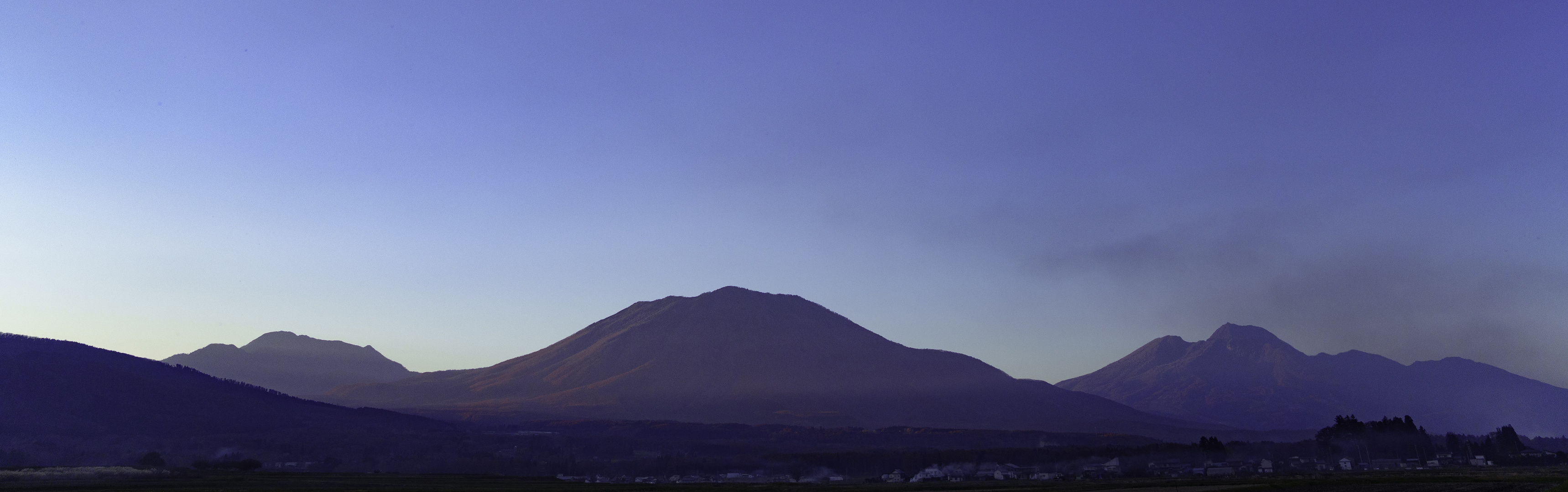 戸隠の帰り、夕暮れの妙高、黒姫、戸隠山が夕暮れに染まりかけていました。