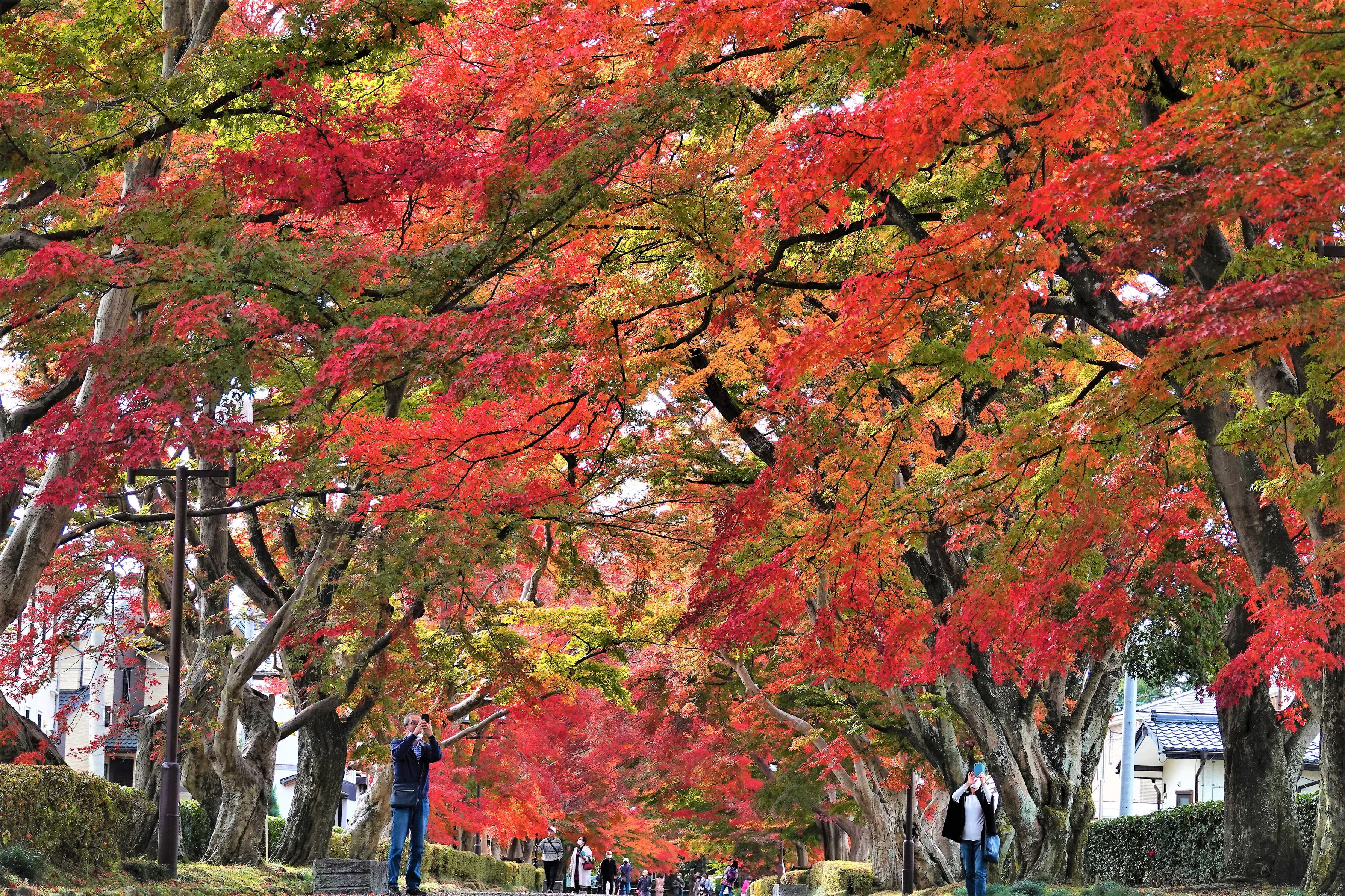 モミジの紅葉も最高なっていました。見物客も沢山。