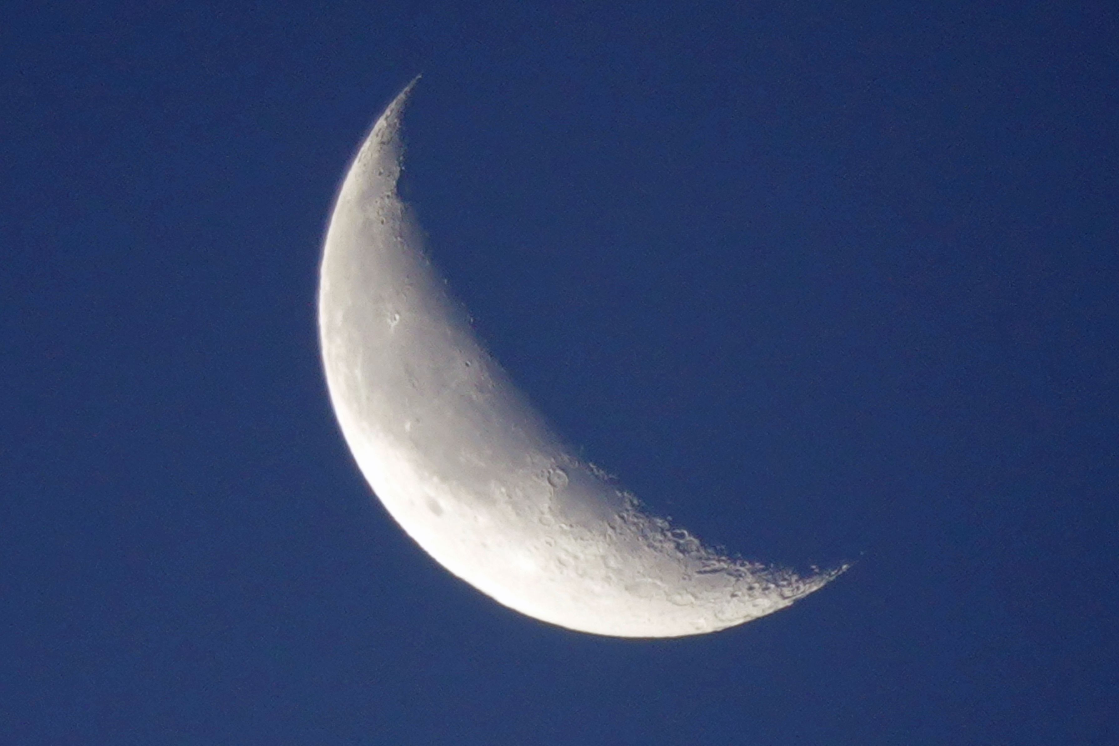 日の出の頃、中天に光る。 (旧暦:10月25日の月)