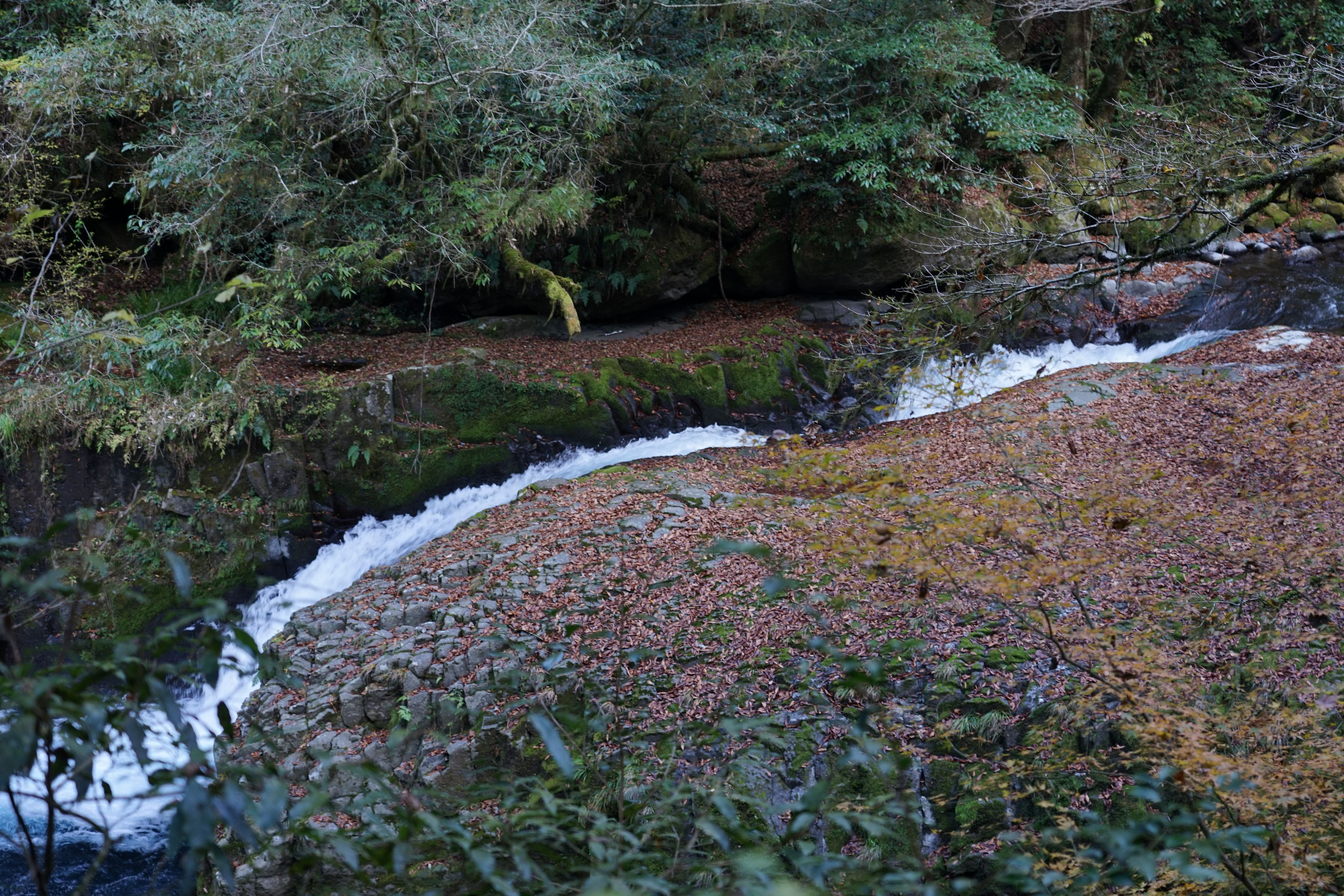 ここは熊本県菊池市にある菊池渓谷である 今の時期紅葉が見頃なのだが、私が訪れた時は少し遅すぎたようである。 川の水量もどうかなと思いつつ道を歩むと、思ったほどではなくどうにか写真に収める 事が出来た。