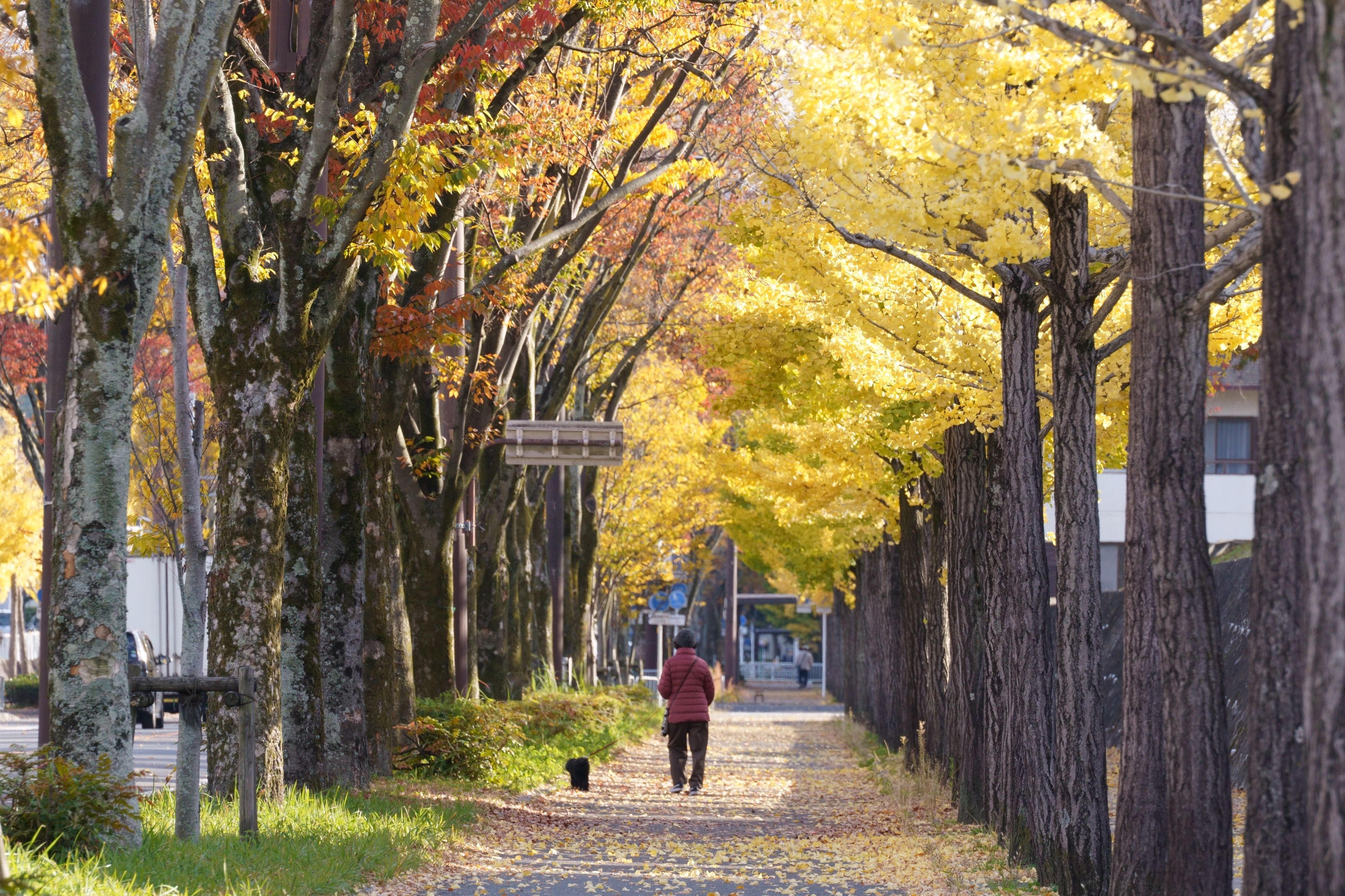 いつも歩道でイチョウとケヤキ並木を撮ってきましたが、車道の反対側からケヤキ並木を中心に