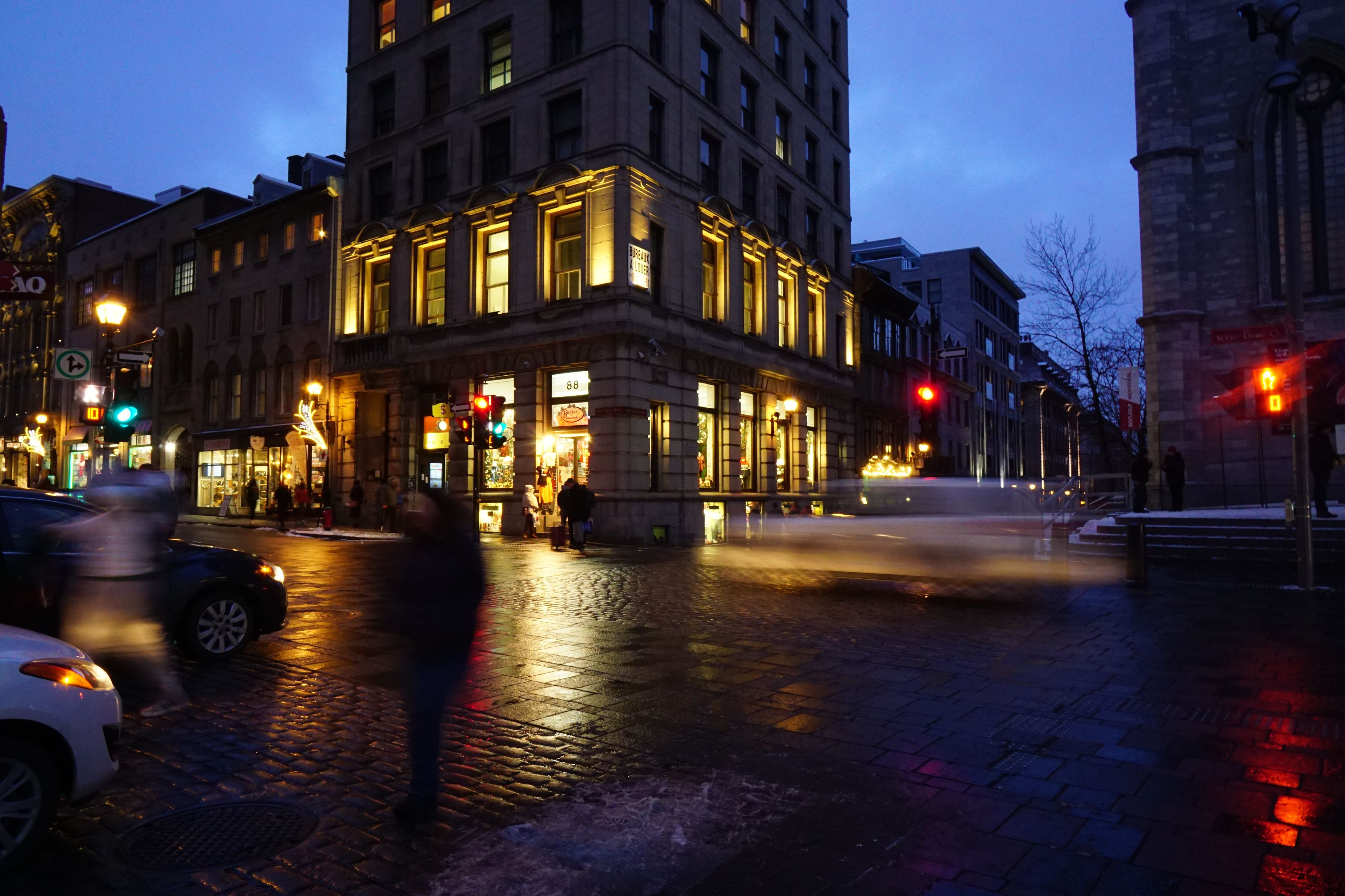 モントリオール旧市街の交差点です。寒かったせいか人もまばらでした。