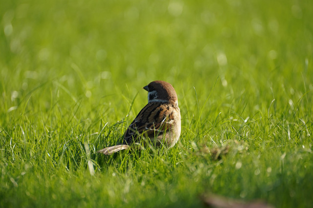 一つ前に投稿した「ある秋の日の昼下がり」の鳩の側にスズメもいたので、こちらはスズメバージョンです。