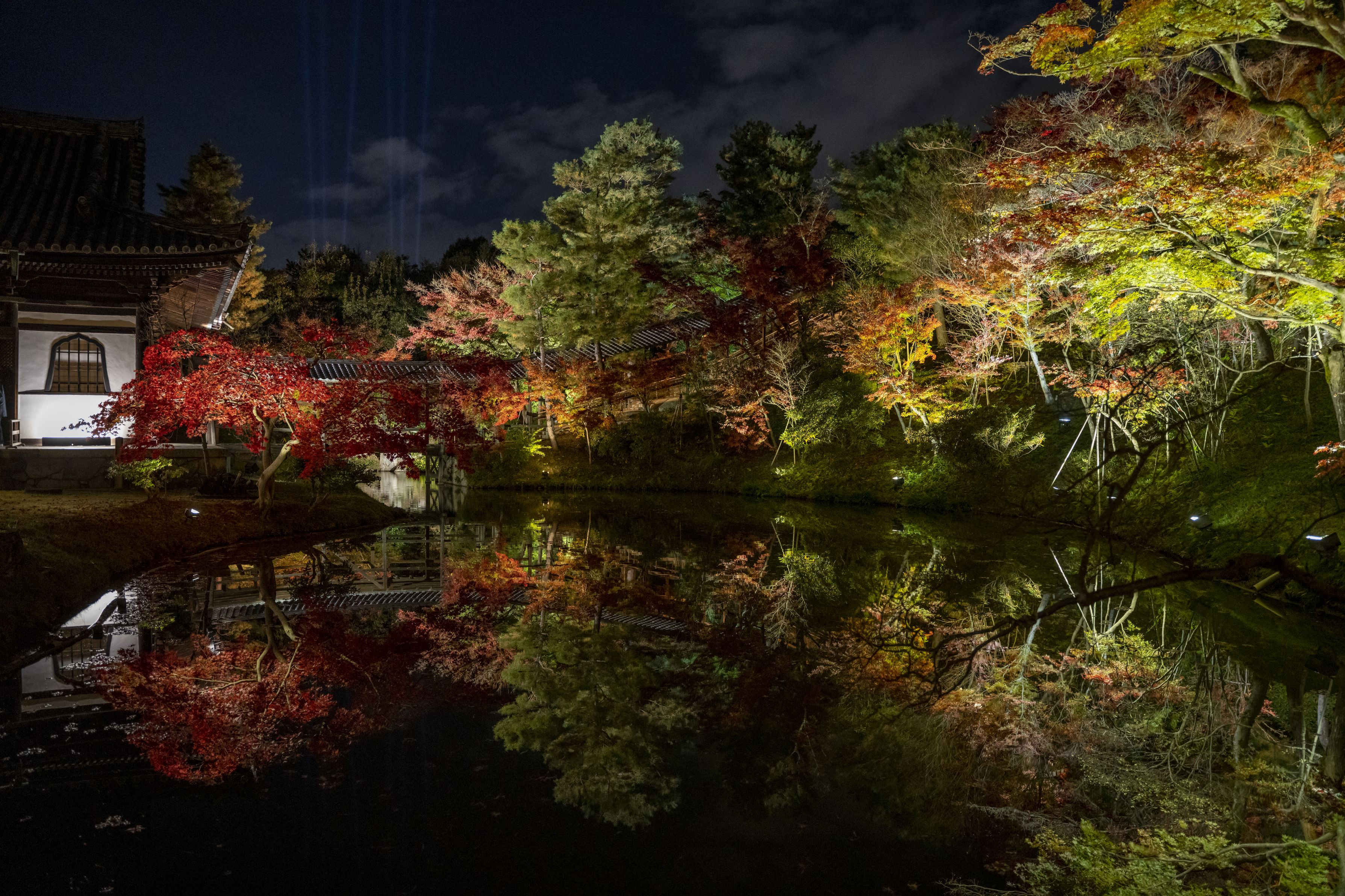 京都東山・高台寺の紅葉ライトアップです。 水面に映る紅葉を是非お楽しみください。