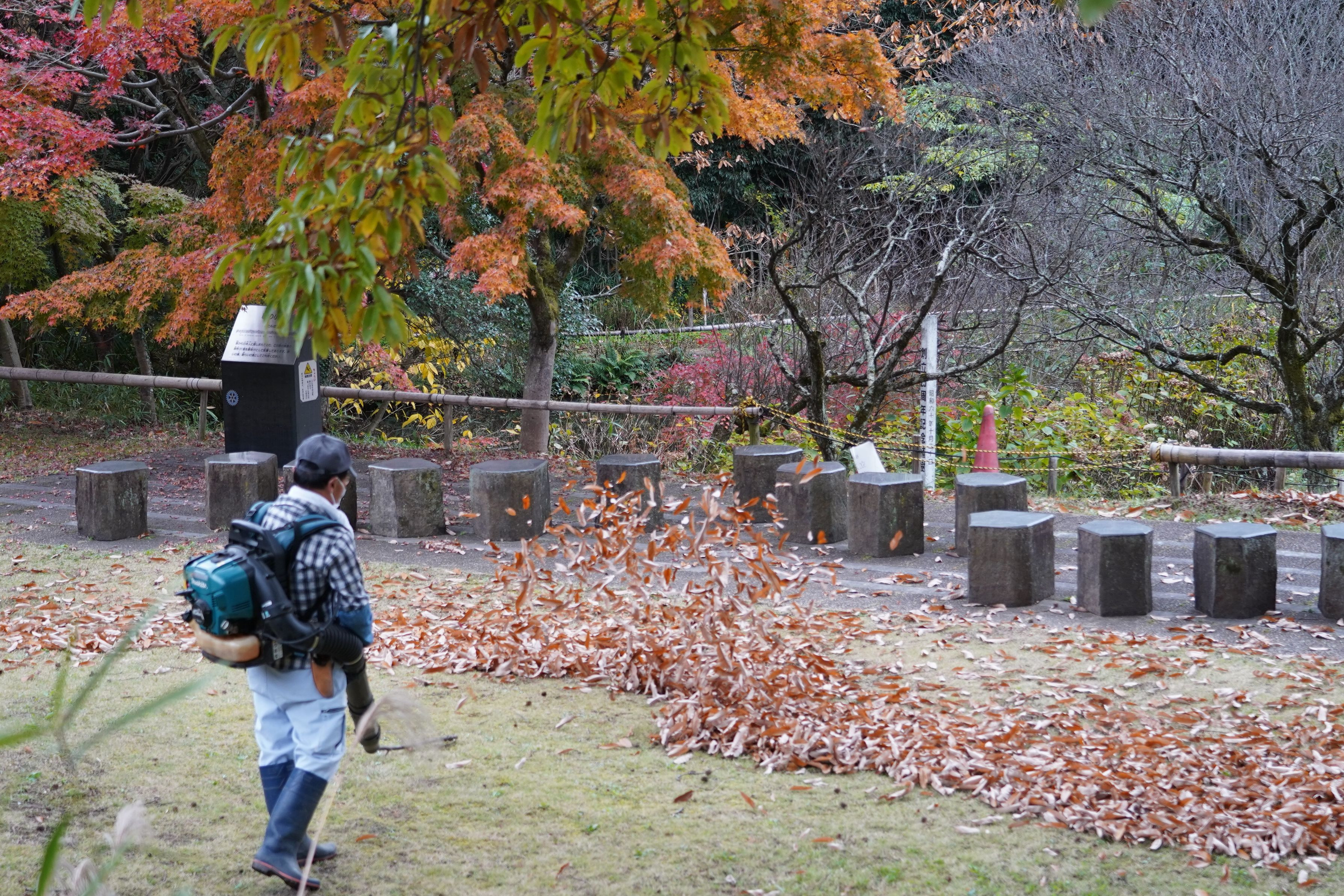 大量の枯れ葉を、近代兵器でいとも簡単に一か所に集めていくおじさんの職人芸。実に楽しそうで暫く、ジッと眺めていました。