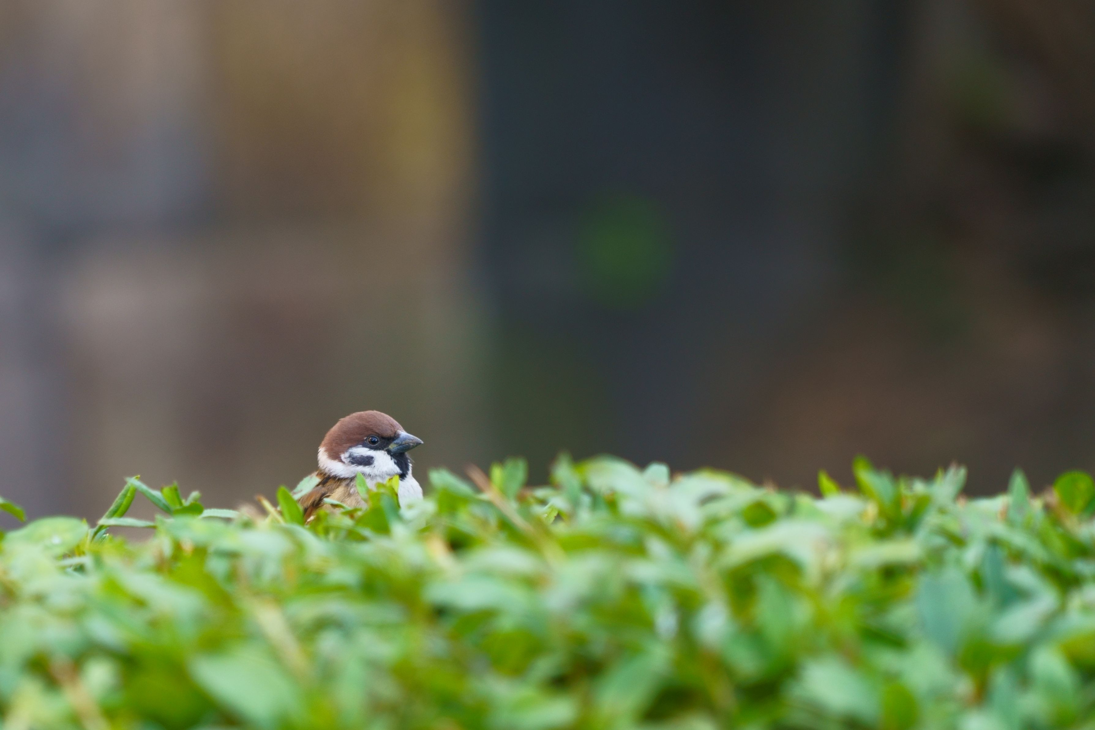 公園の植木に止まっていた雀が可愛いかったので撮影してみました。