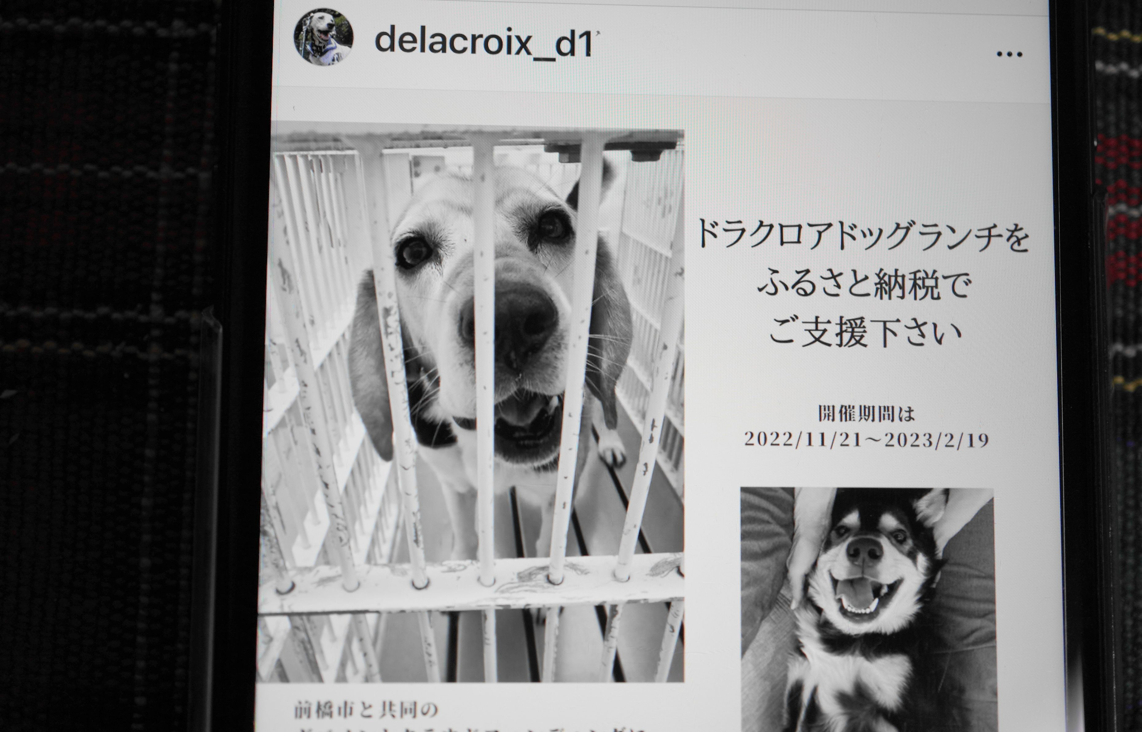 ケンちゃんを保護して下さった群馬県館林市のドラクロアドッグランチさんのインスタに、ケンちゃんが掲載されました。