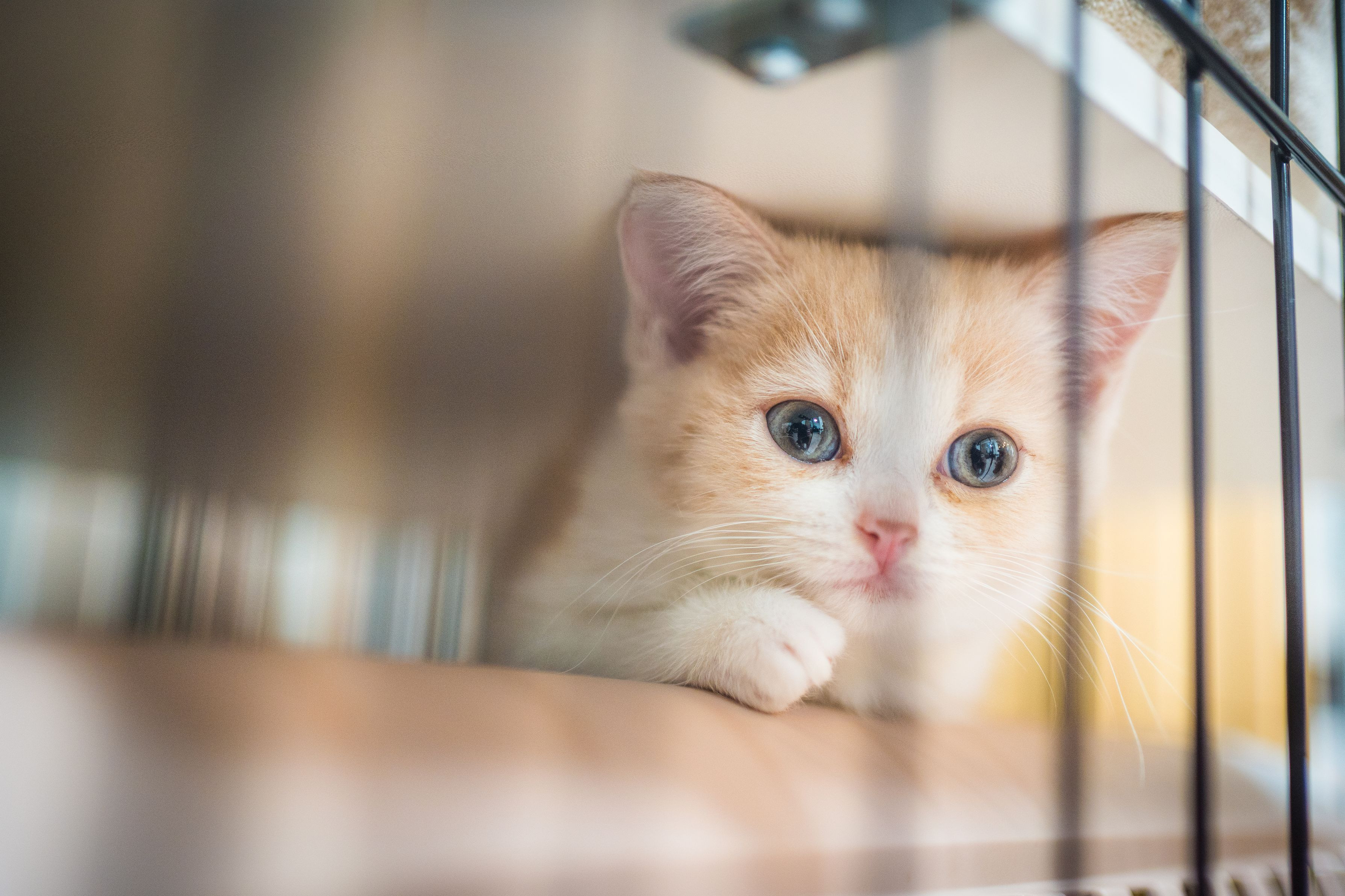 うちの猫が家に来たばかりの頃の写真です。まだ目が青いですね。落ち着くよう移動で利用したキャリーをケージに入れてあげたのですが、ケージの中ではなく上がとても気に入ってしまいびっくりしました。ちょうどいい隙間だったみたいです。すぐに大きくなって入れなくなりました。
