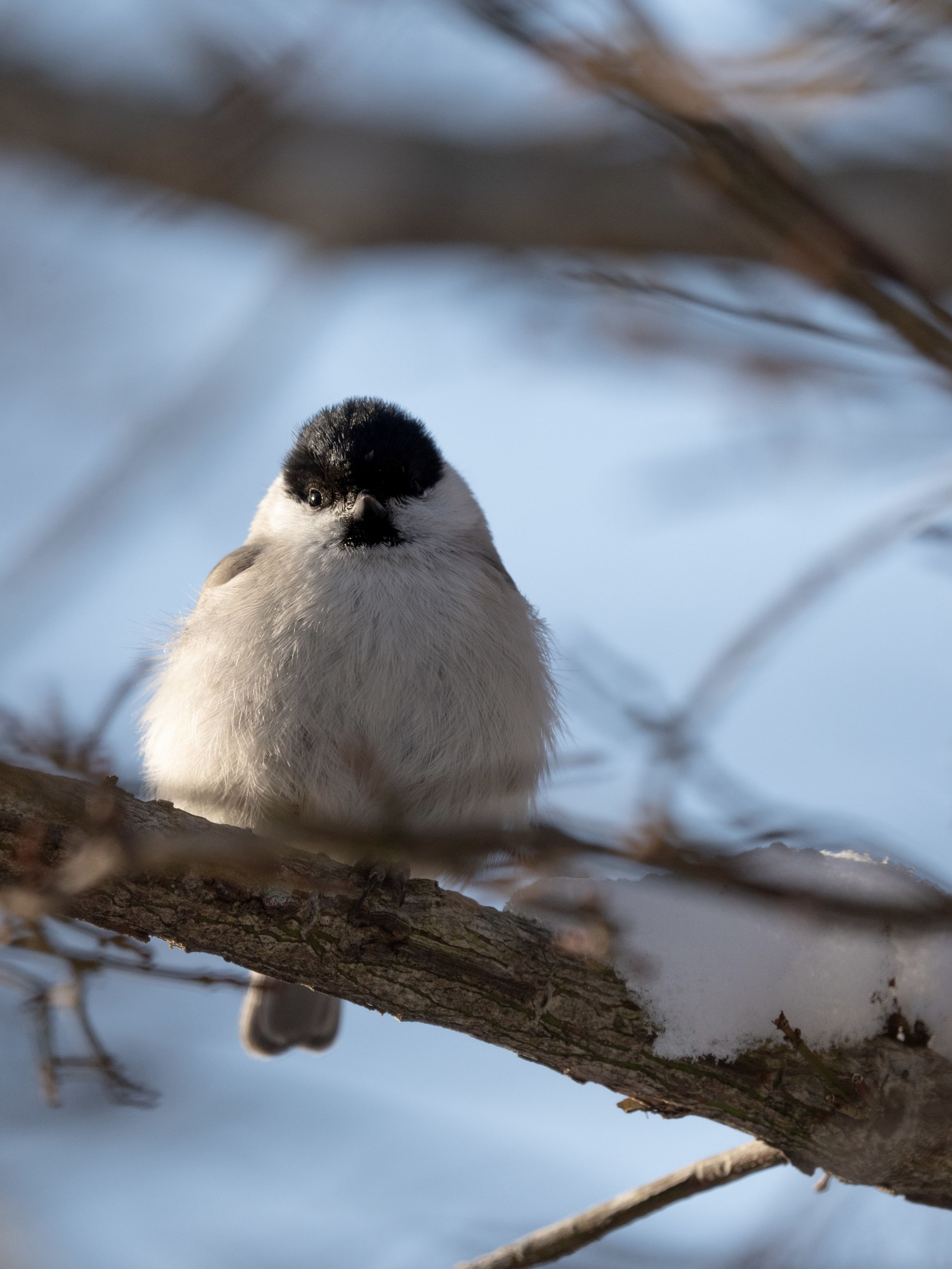 頭にワンポイントがあってカッコ可愛いハシブトガラさん 冬毛だともちもちです
