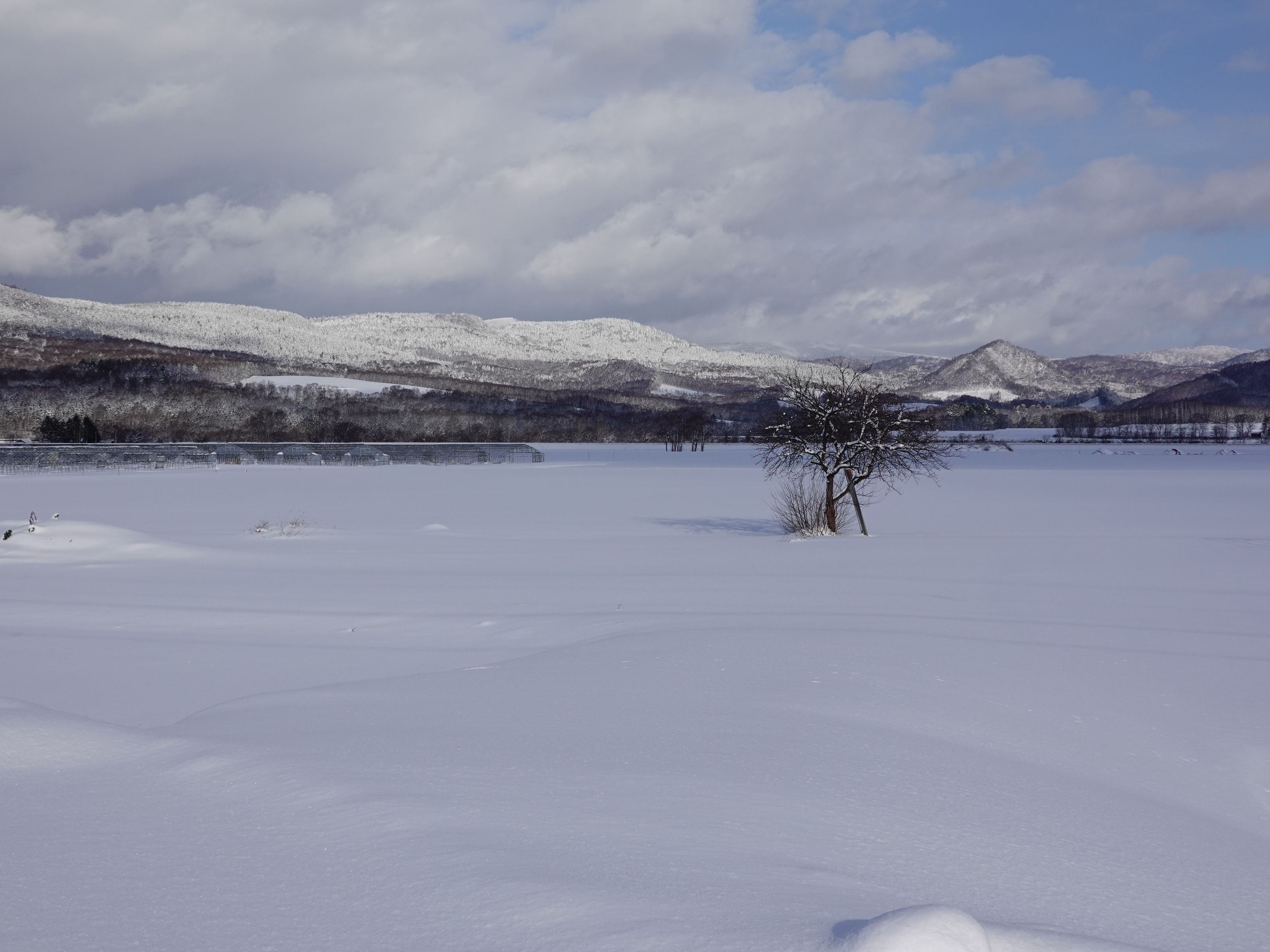 雪が降ると、田んぼも、畑も隠してしまい、雪原状態です(^_^;)