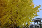 小さなお寺のそばのイチョウの木が陽の光を浴びて鮮やかでした。