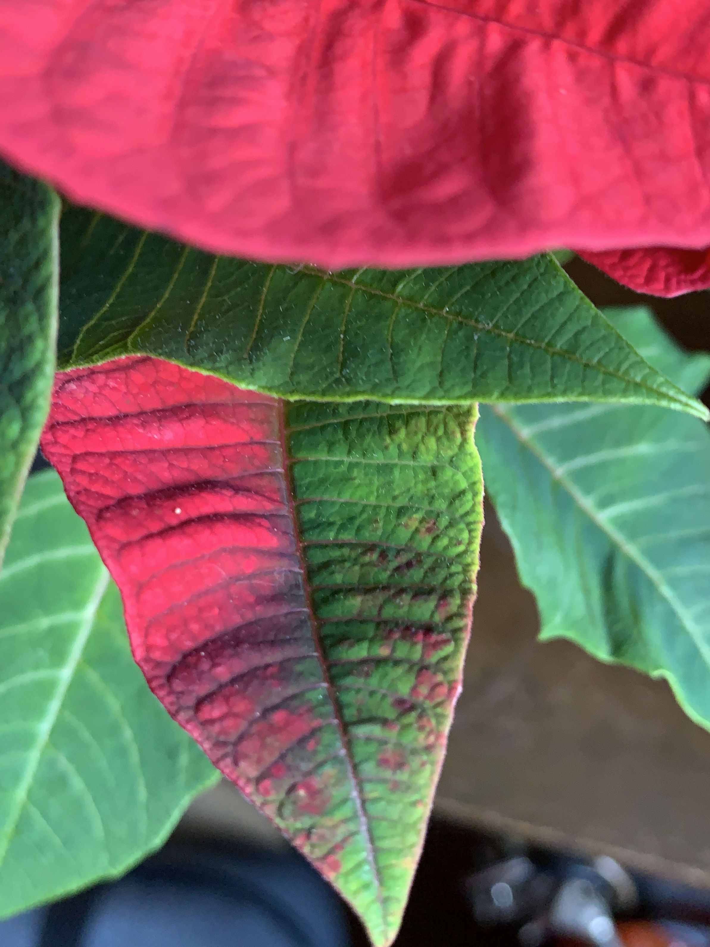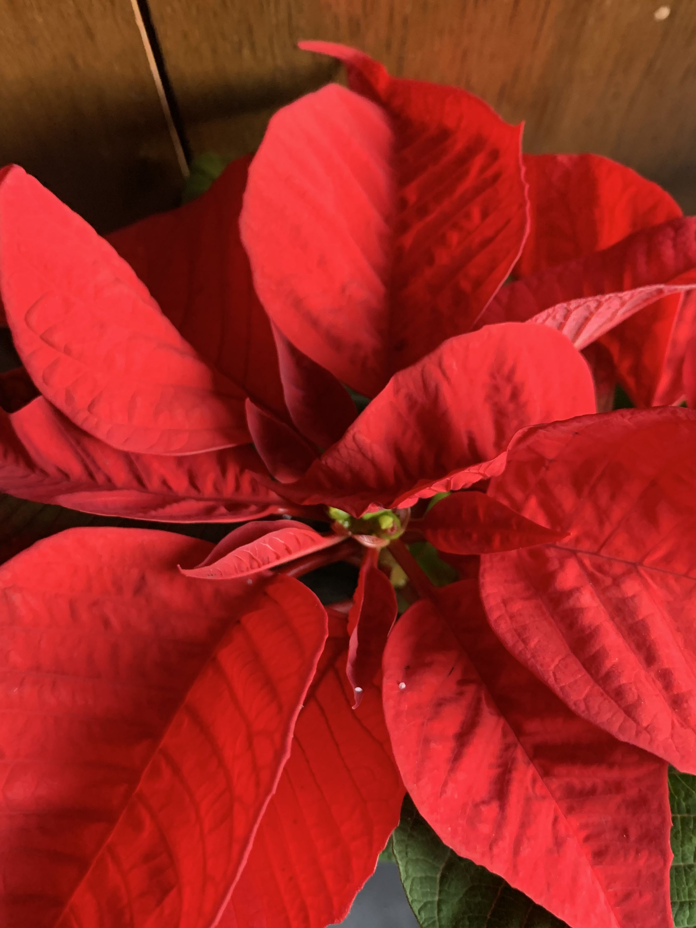 母の花 今月はポインセチアにしました 真っ赤な花 赤と緑の葉 近づいてきましたクリスマスが