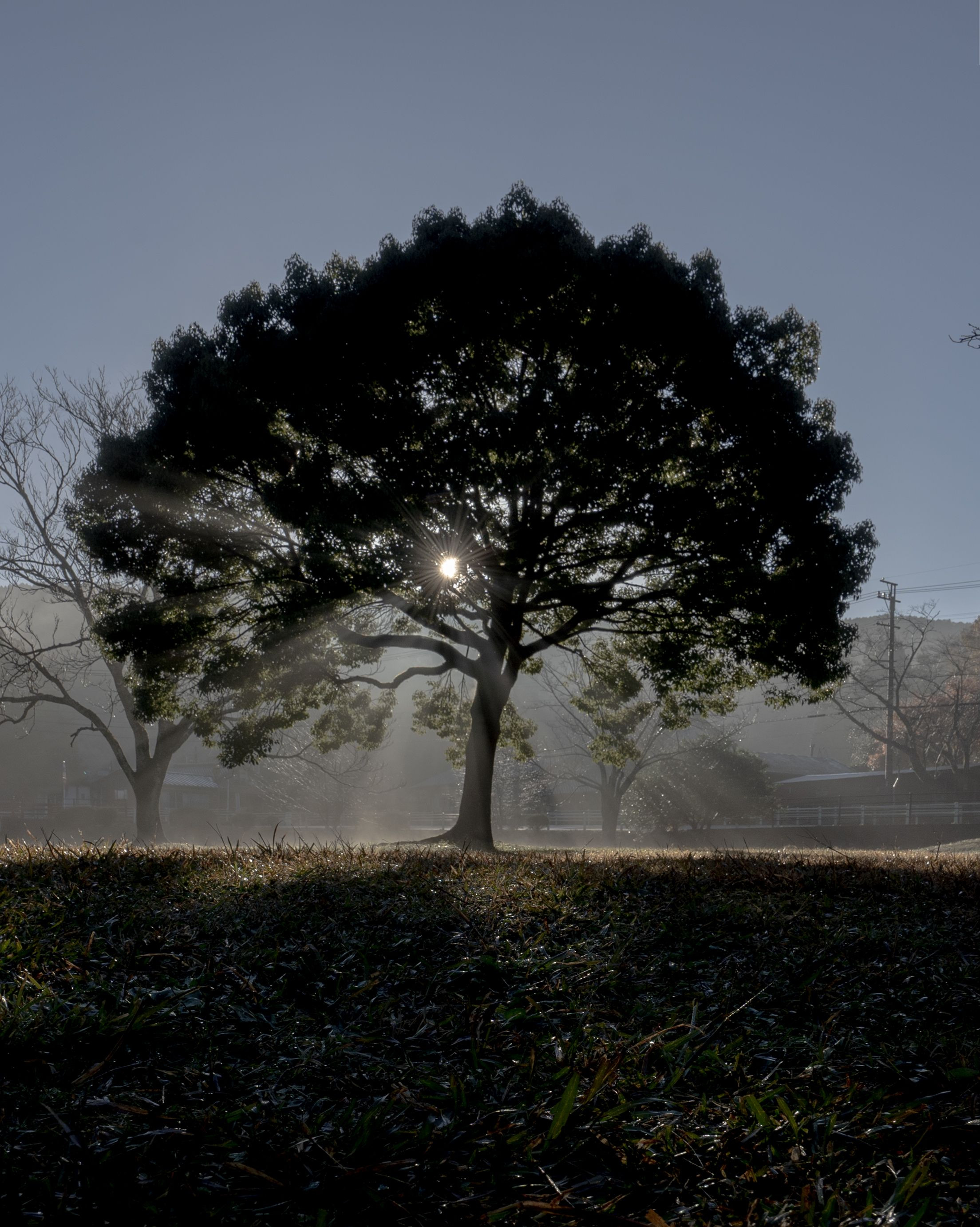 定光寺公園の早朝。雨の翌日を狙っていきました。 思ったとおりのモヤが出て光芒も美しく撮れました。