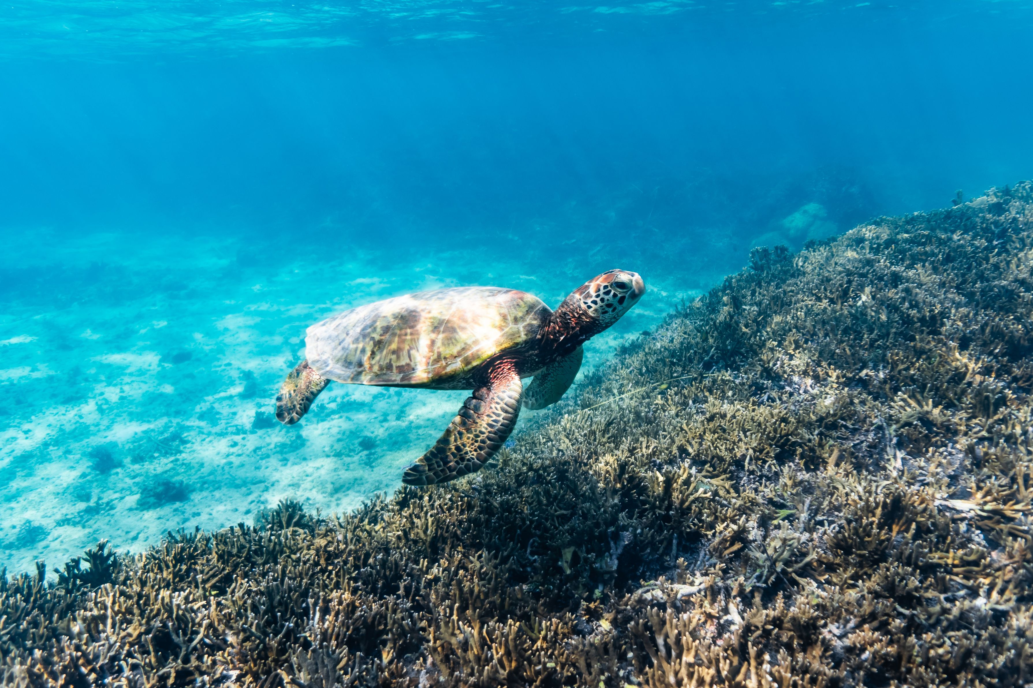 宮古島で撮影したアオウミガメの写真です。