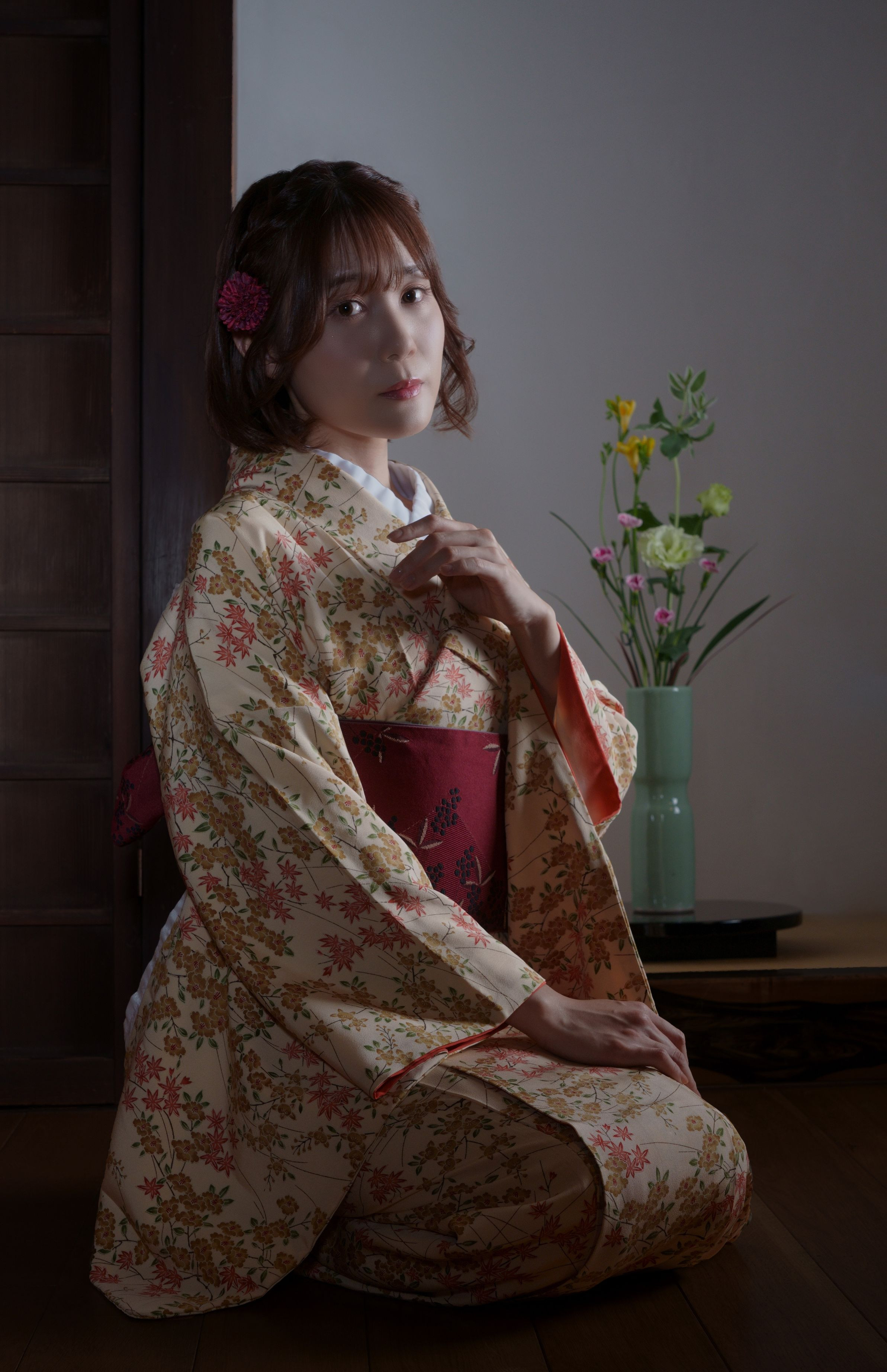 モデルさんに、黄色の着物を来て頂いたら、とても似合ってました。