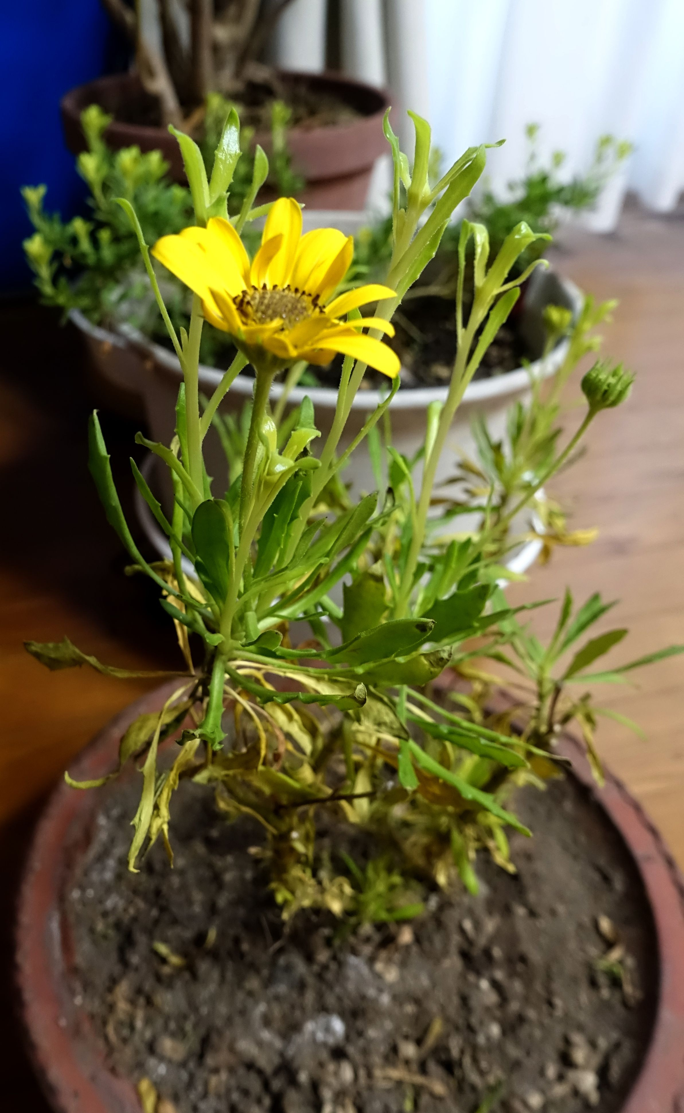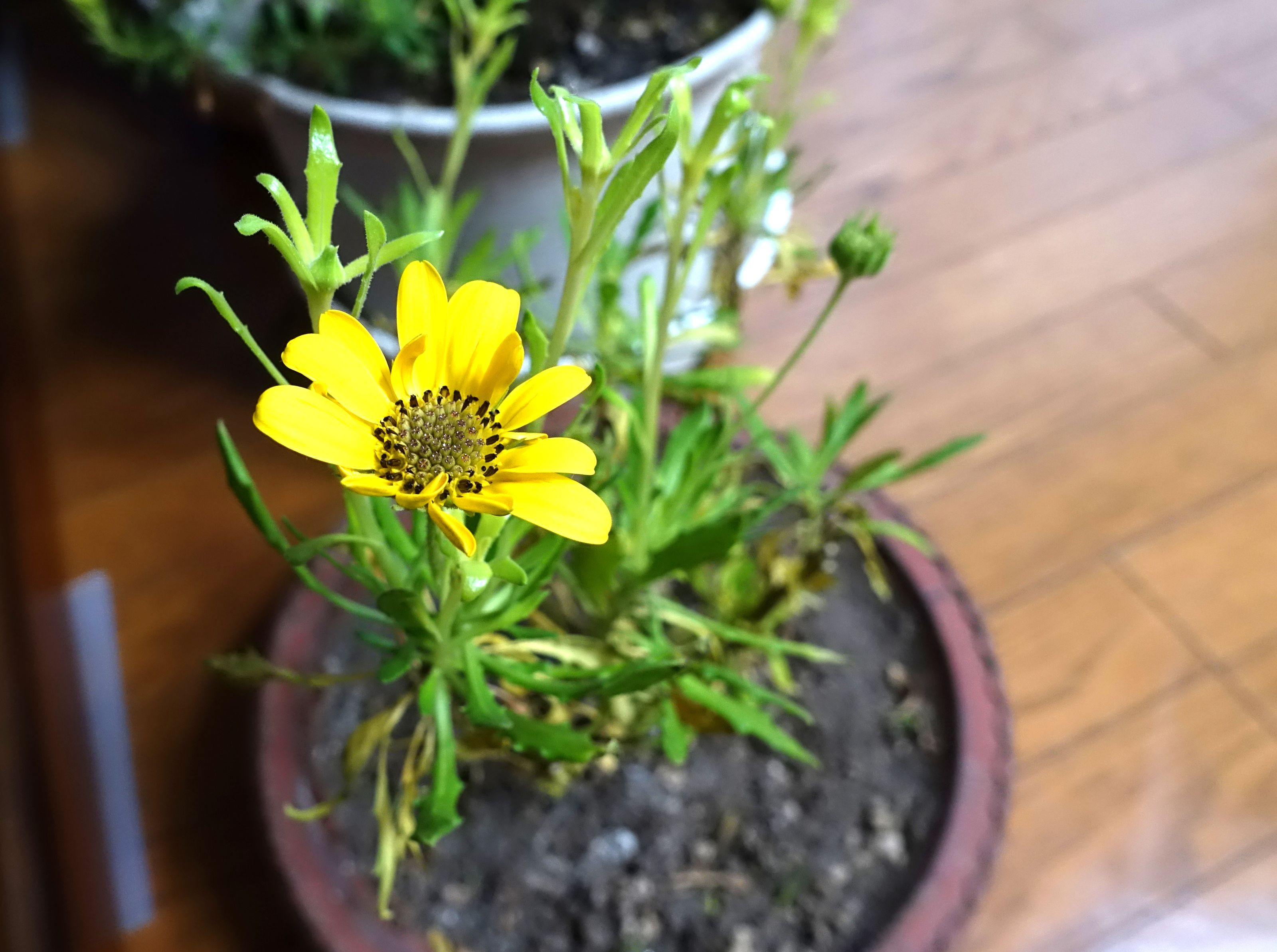 寒くなったので室内に入れたら咲き出しました 名前がわかりません