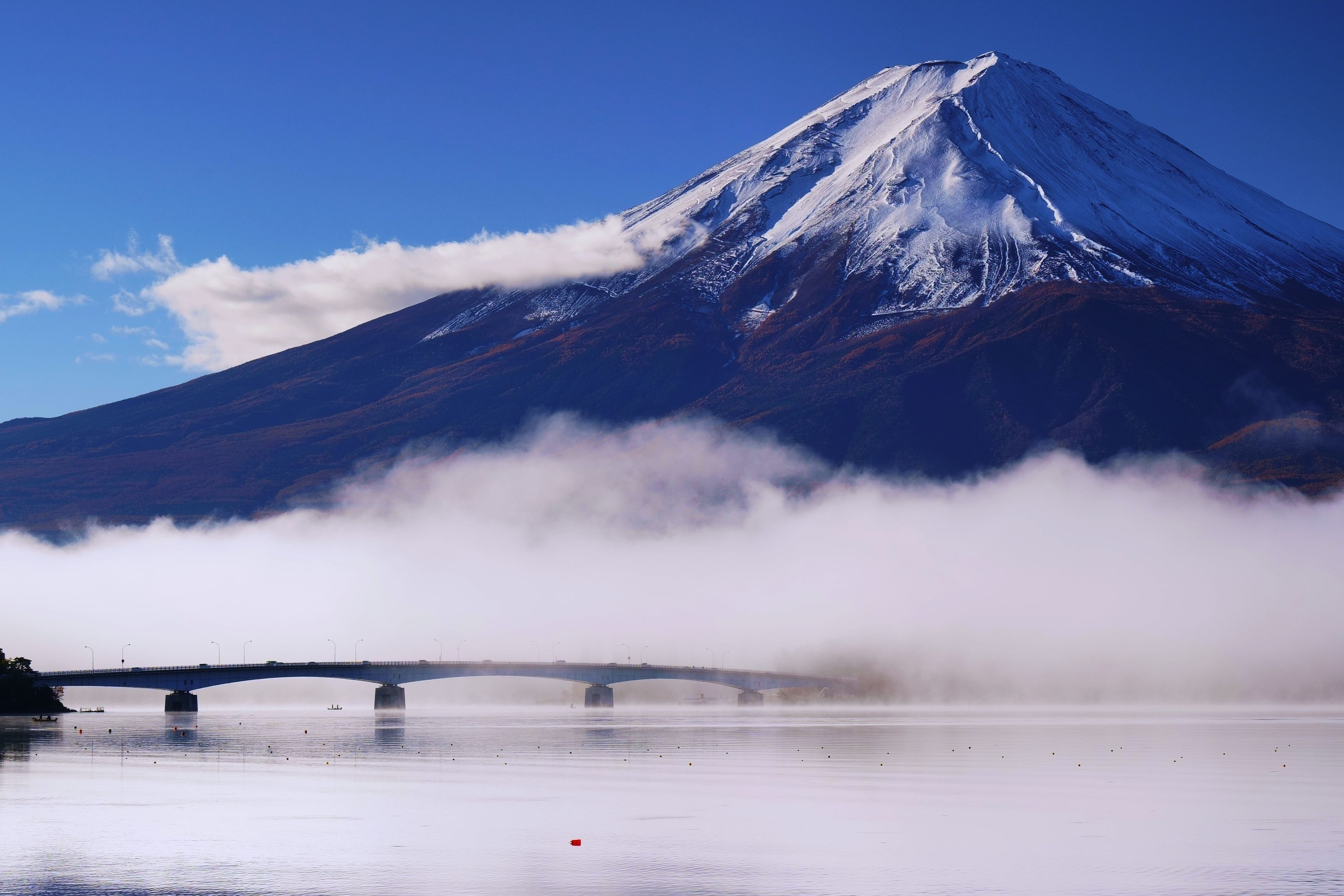製品情報>My Sony>αcafe>霜月の富士山と霧の河口湖大橋(sanpoさん)