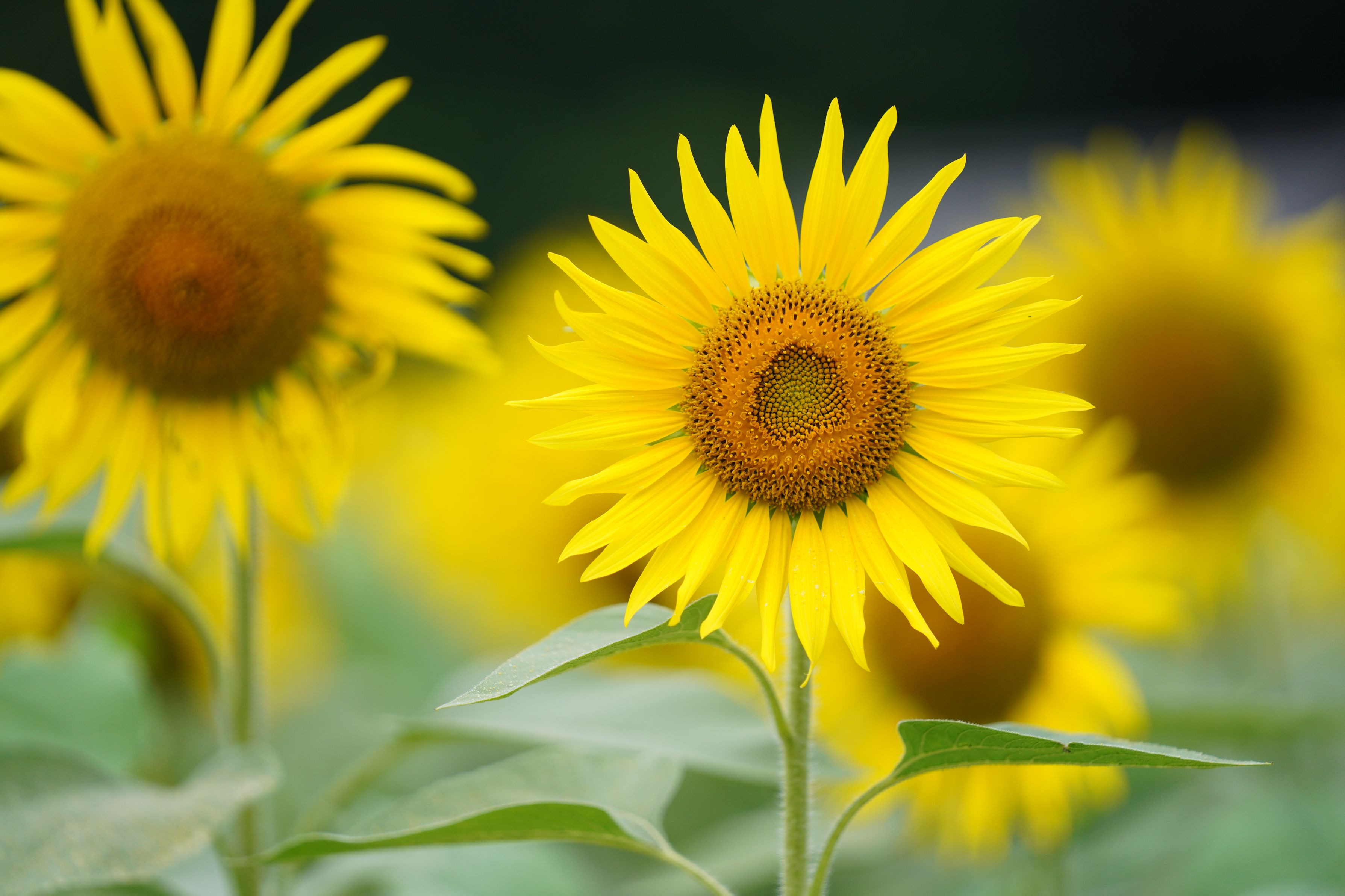 この日は猛暑であったが、満開でシャンと立った向日葵たちに会えて大満足いたしました。 育てた方々、どうもありがとうございます。