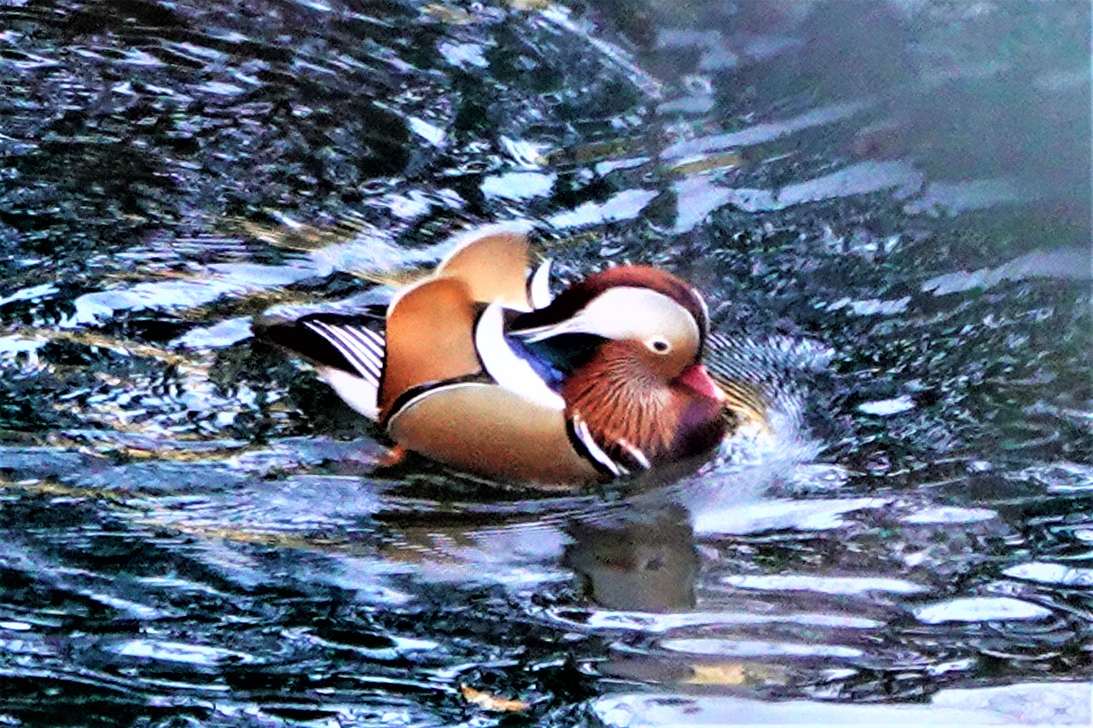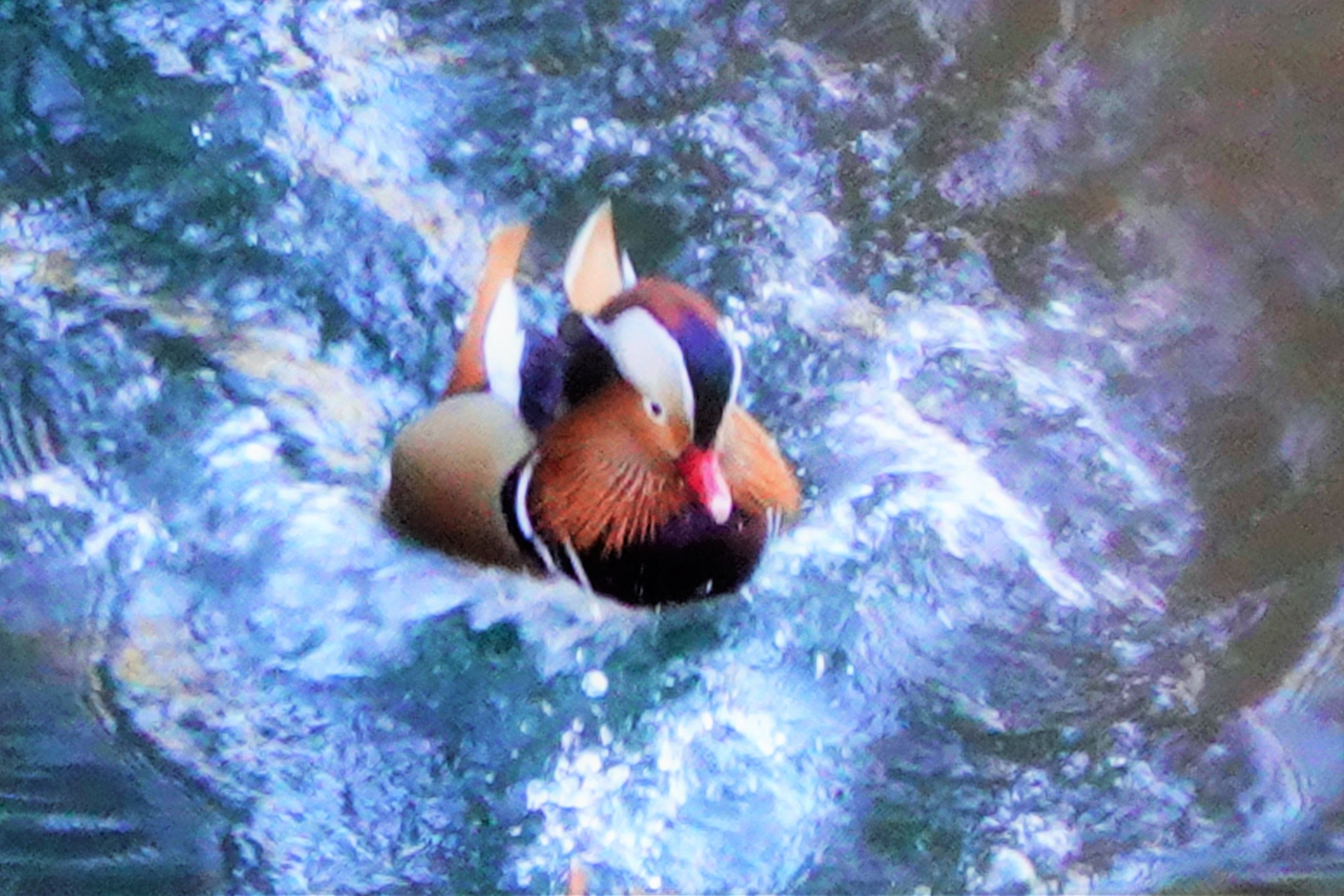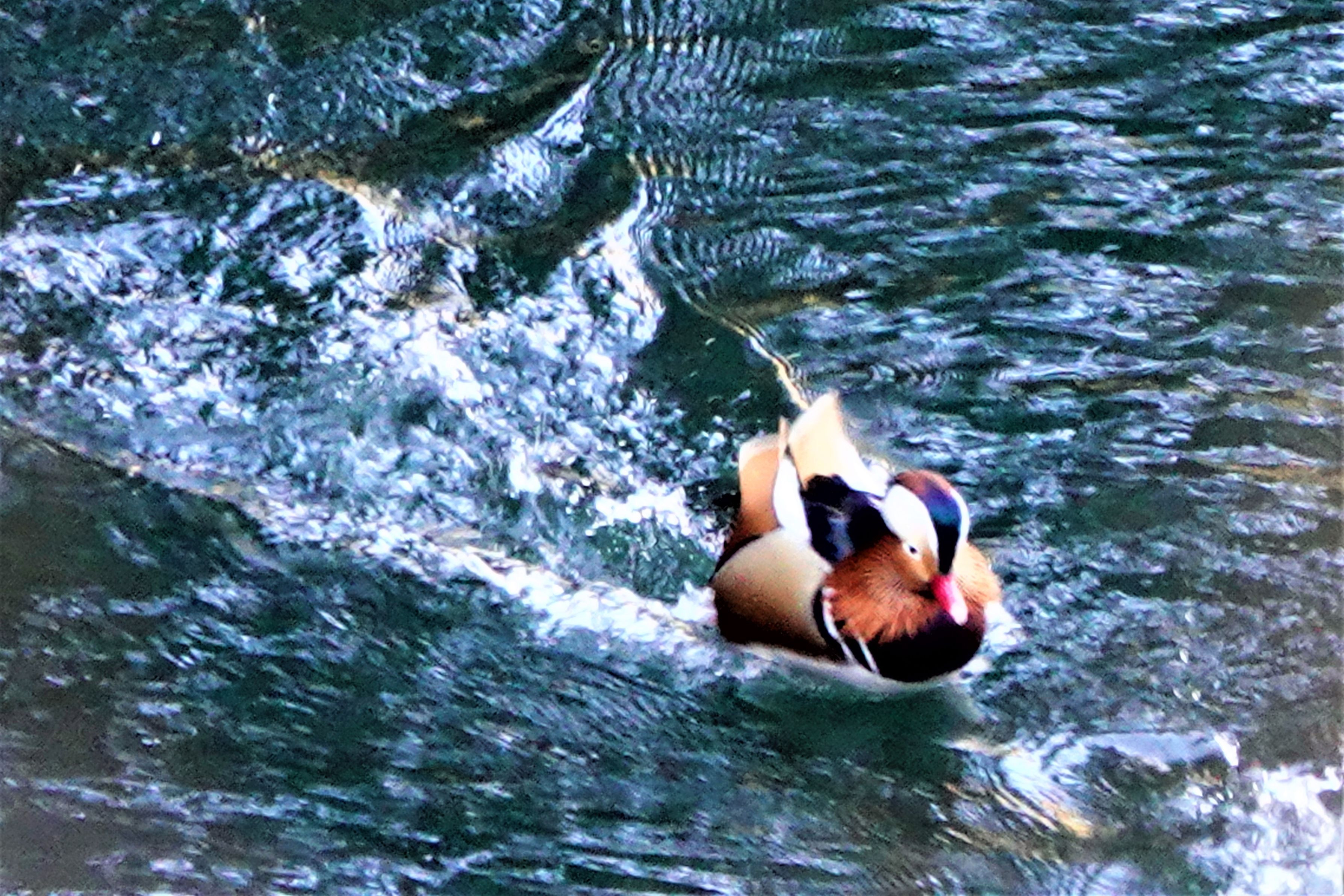 オシドリを探しにダム湖に行って見つけましたが遠くて中々撮れませんでした。別の入り江の様な所で数羽が追いかけっこをして水しぶきが出ているところを撮って見ました。