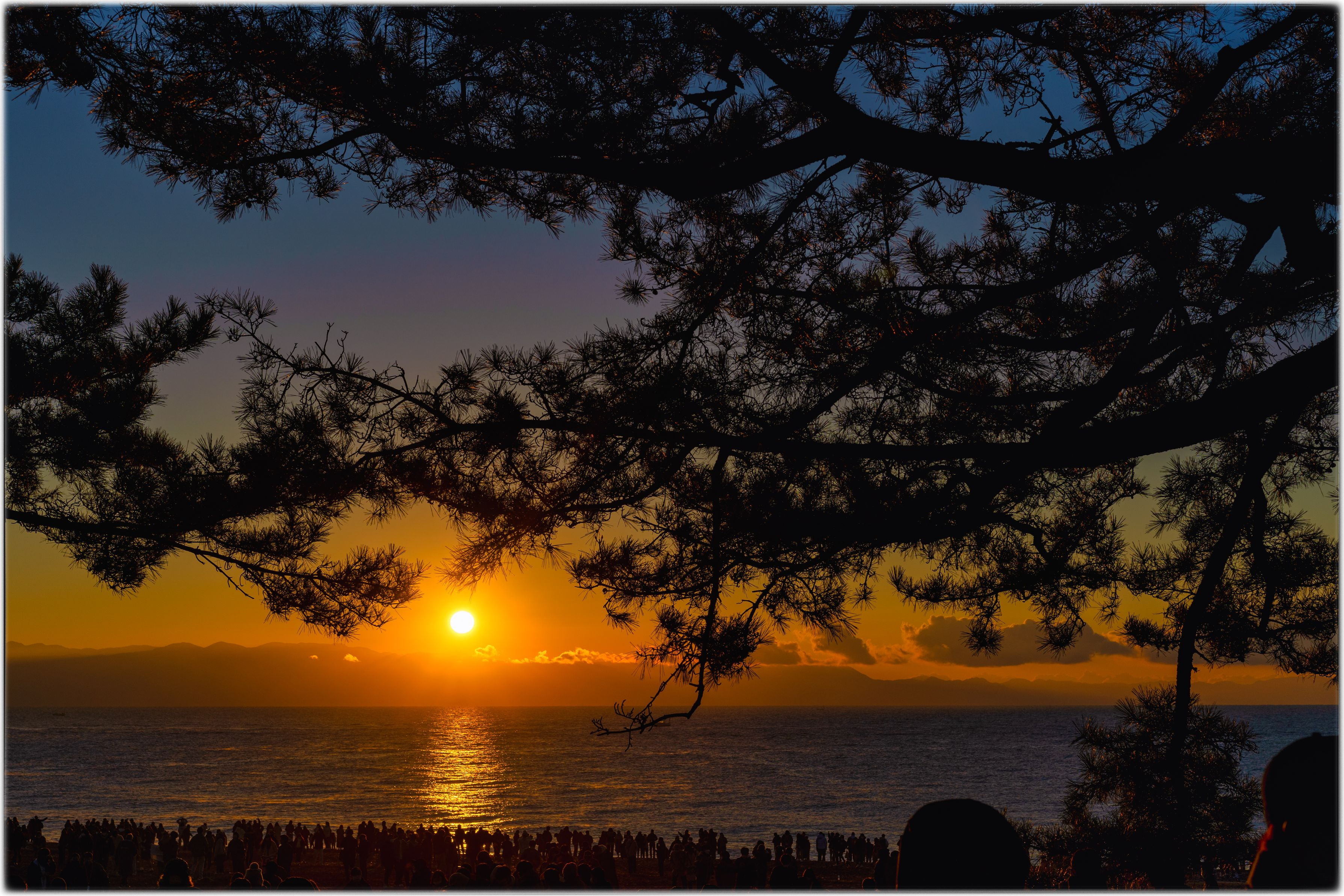 三保羽衣の松にて、2023年初日の出を 皆様にとってよいお年となりますように 本年もよろしくお願いいたします。