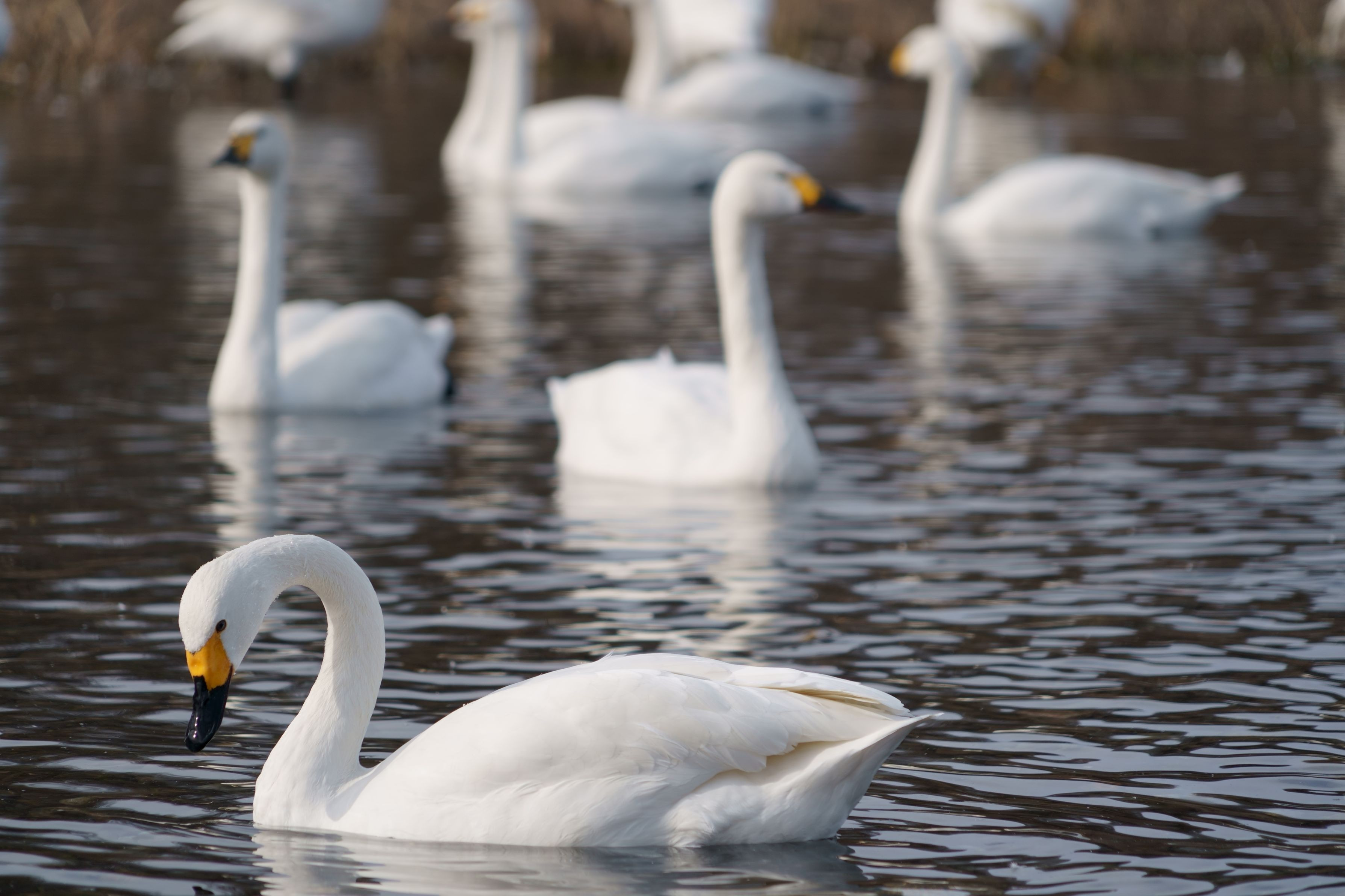 安曇野の白鳥飛来地、御宝田遊水池にて撮影