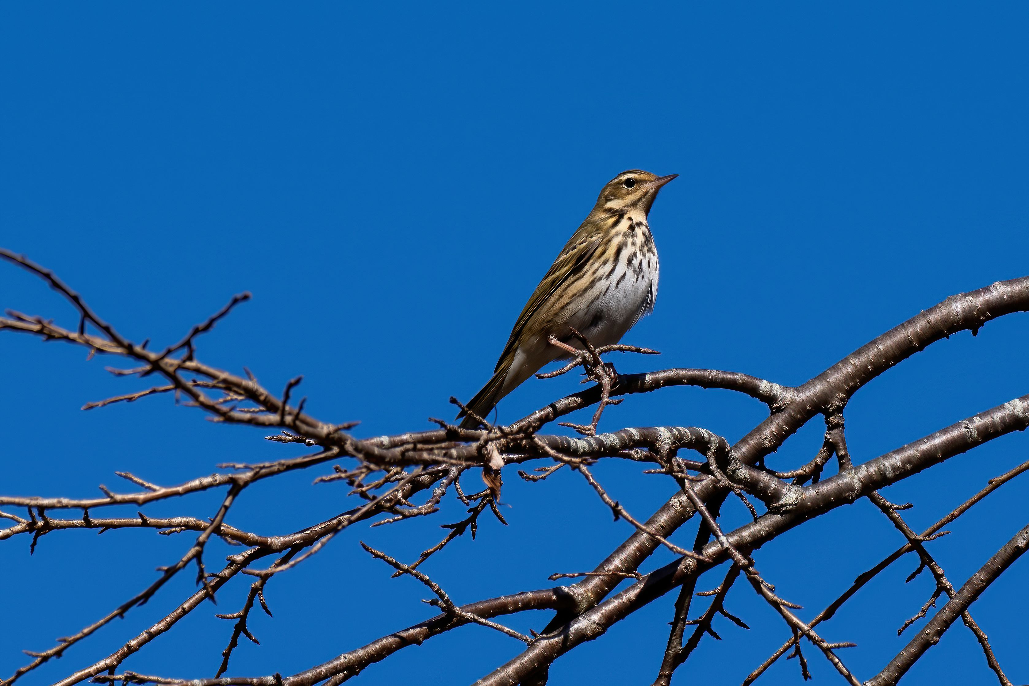 ベンチ前の桜の木に止まってくれました。