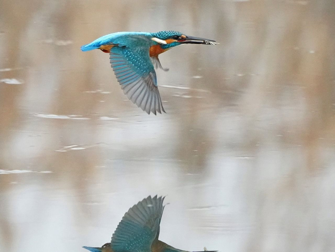 激寒の早朝やっとエサをゲットしたカワセミです。