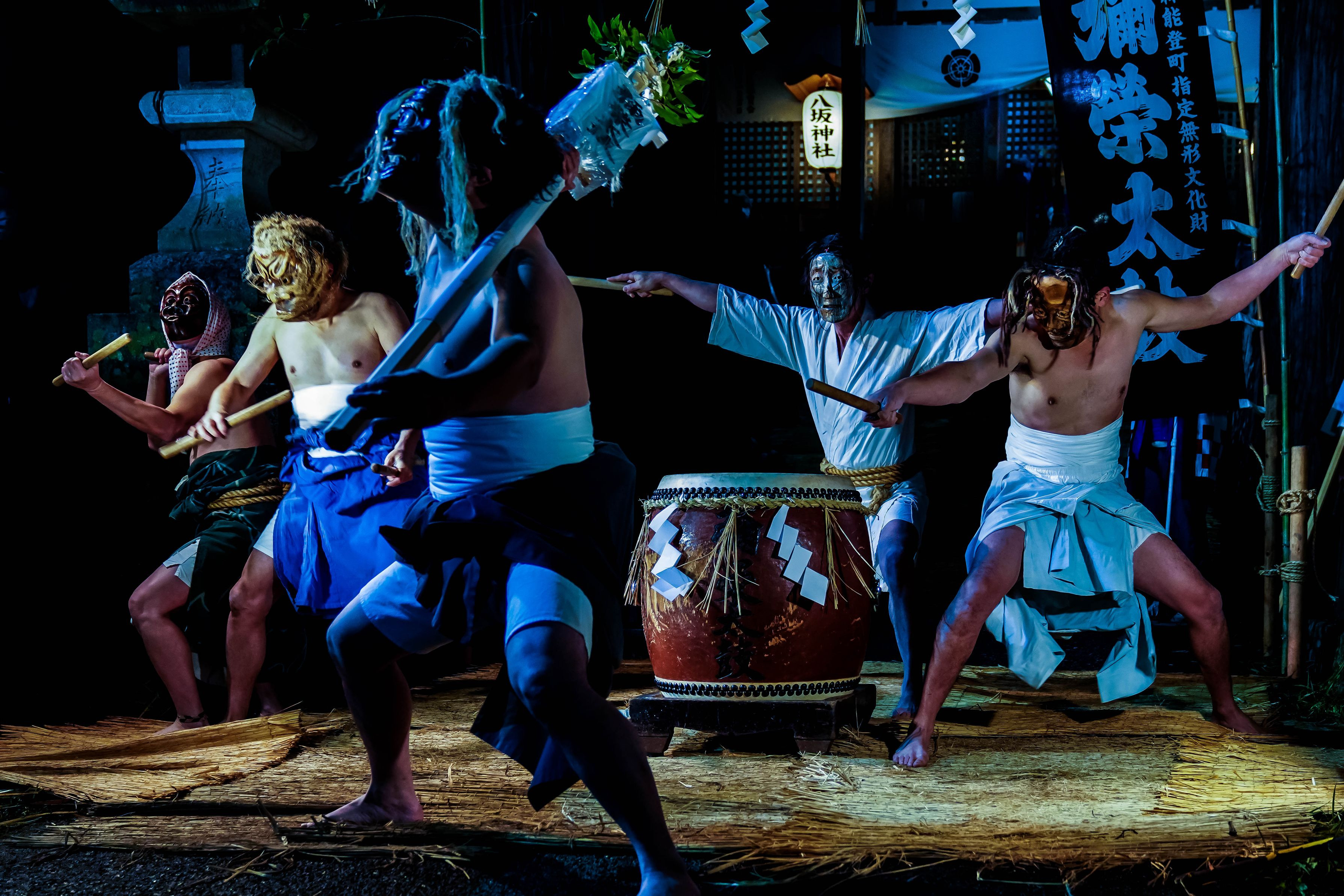 毎年1月7日の午前零時から行われる、宇出津 八坂神社の歳旦祭に奉納される、弥栄太鼓の初打ちです。