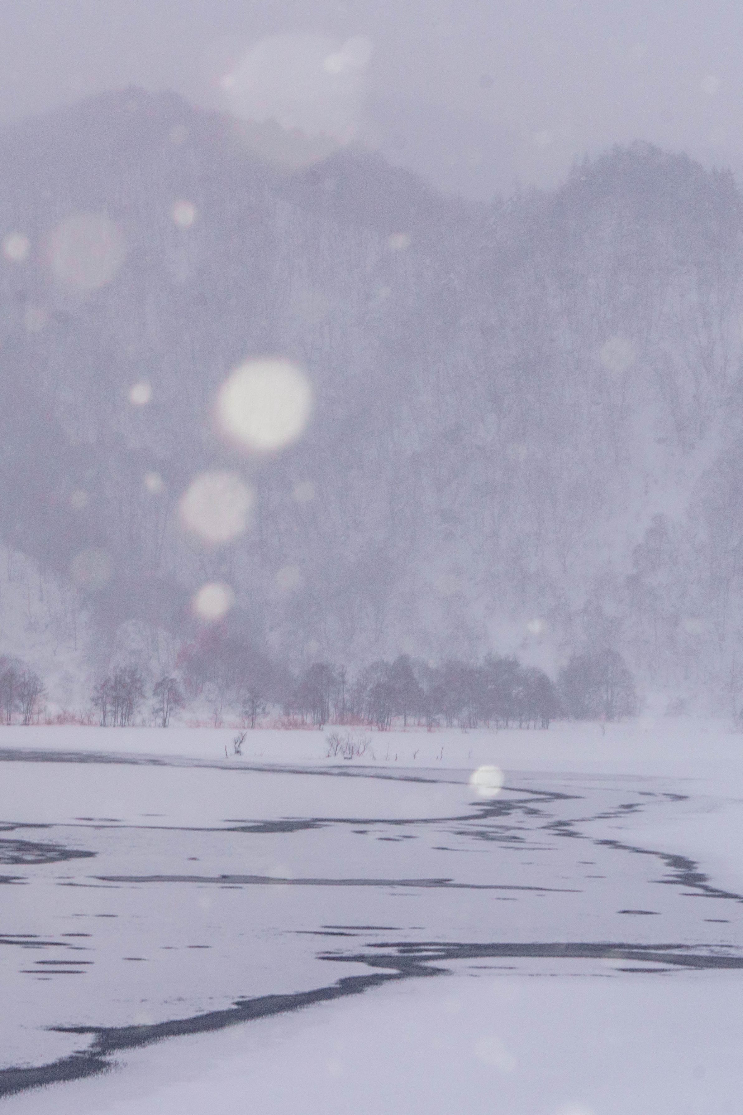 製品情報>My Sony>αcafe>降りしきる雪が湖面に氷紋を描いていきます。(chiemgauさん)