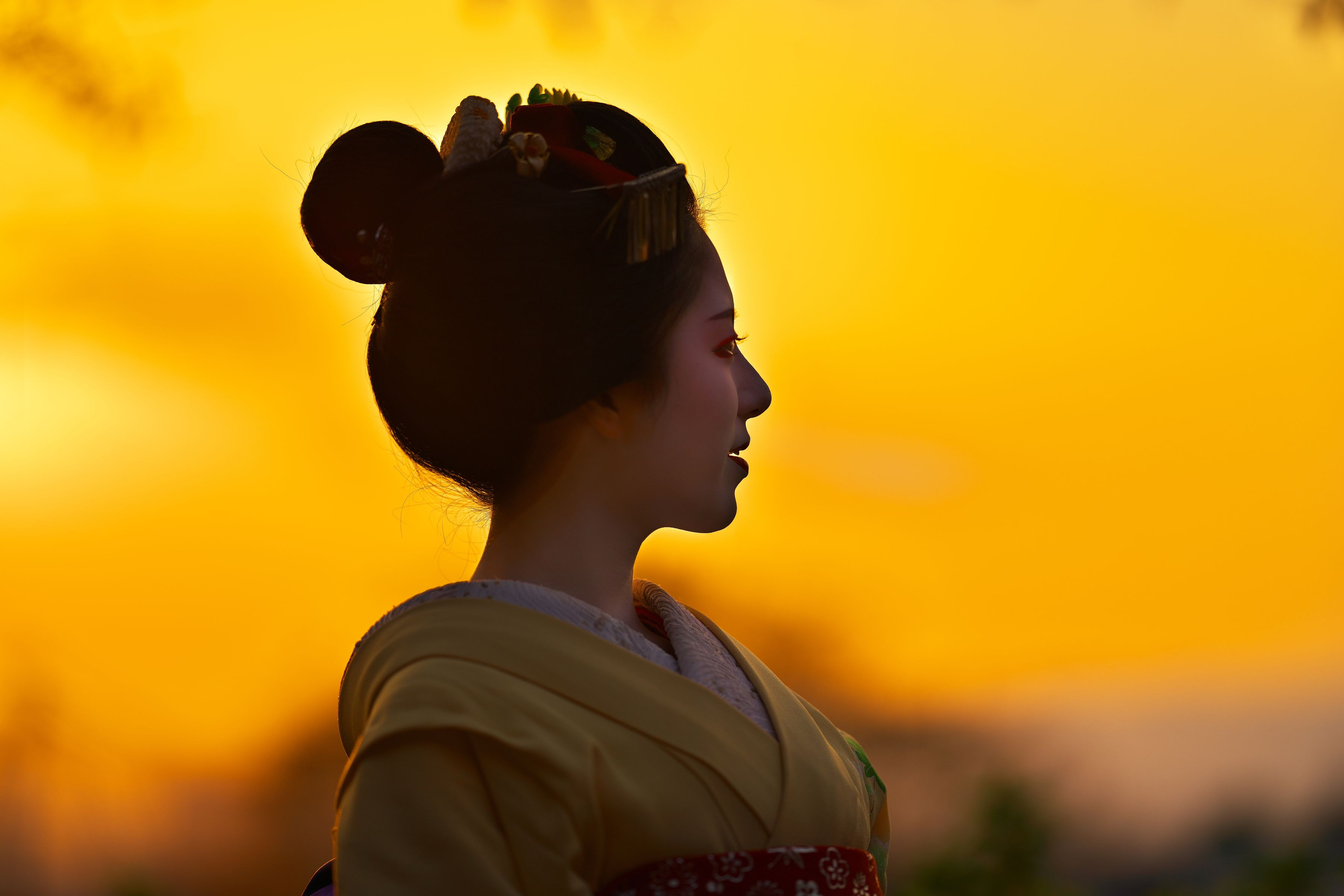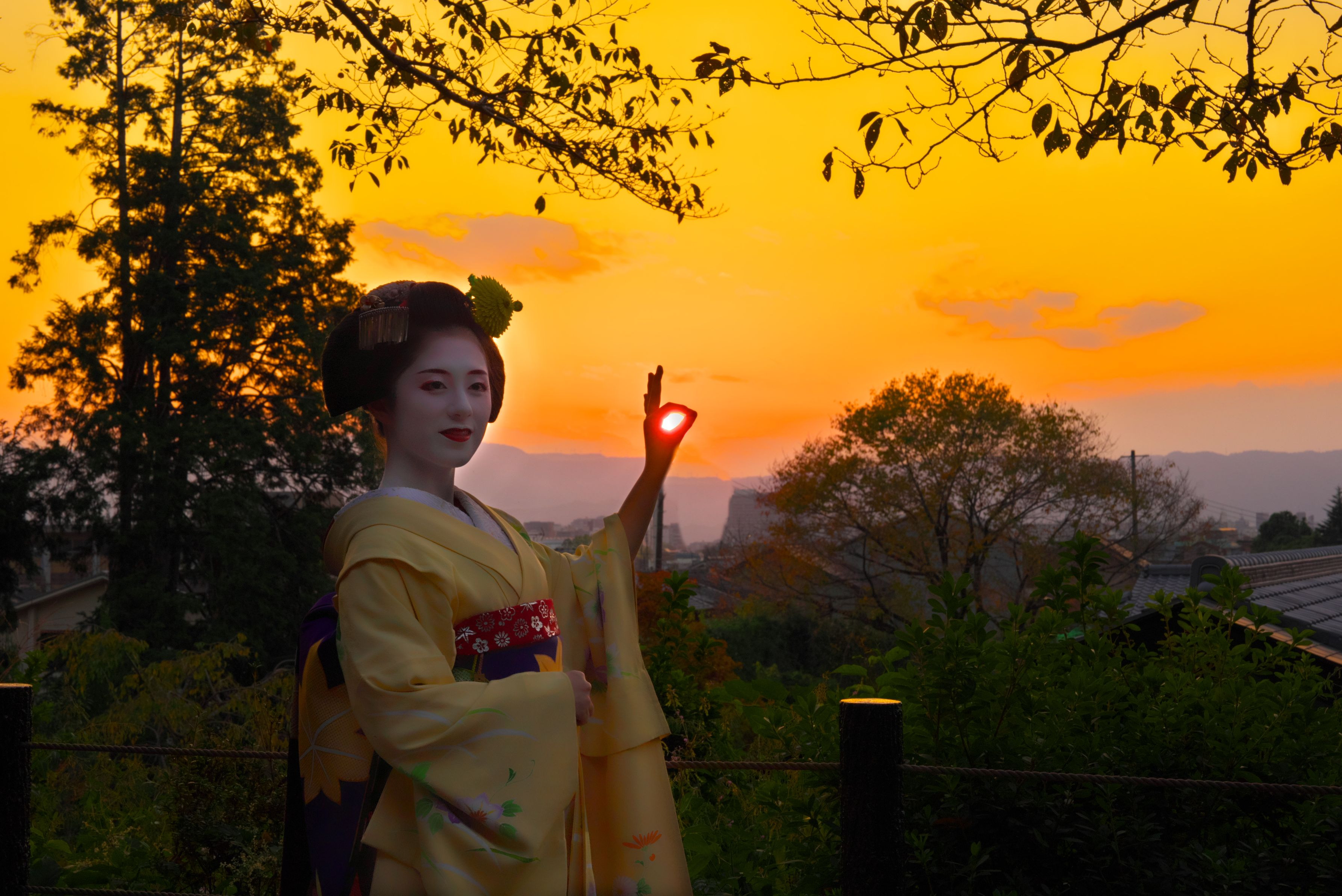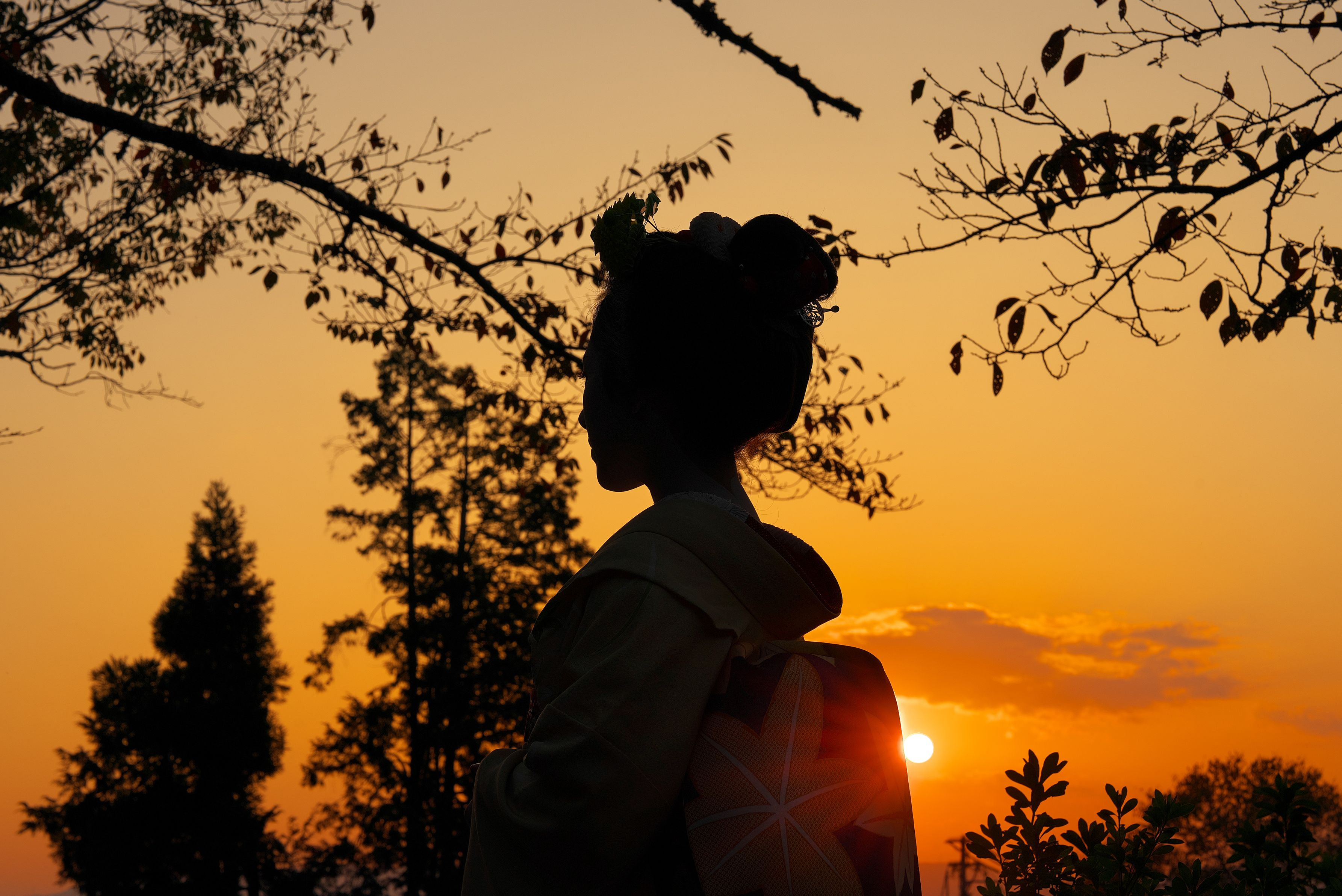 祇園甲部 亜佐子さんです 哲学の道にて 夕陽に奇麗に映えてくれました。