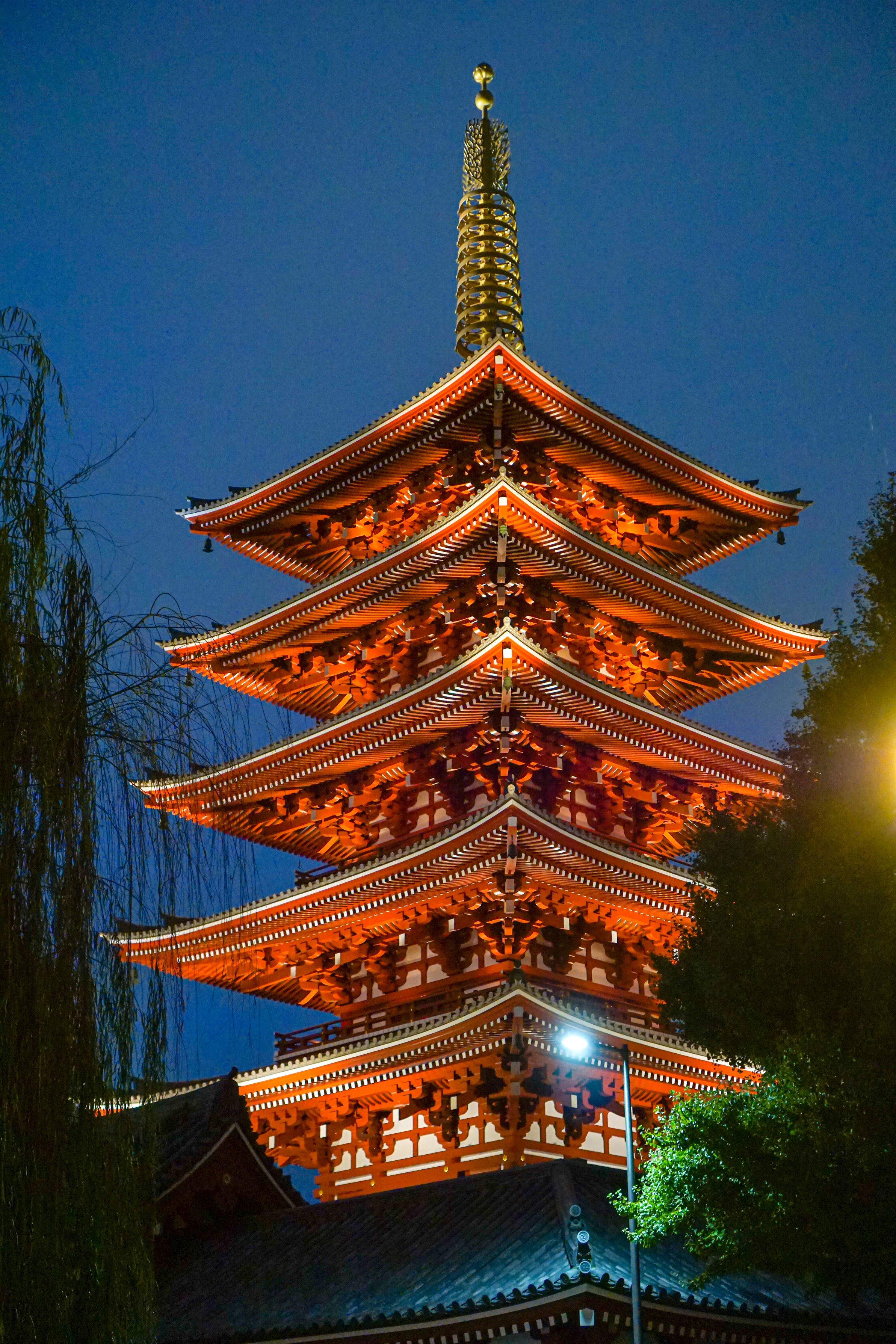 夜のライトアップされた五重塔を撮影しました。