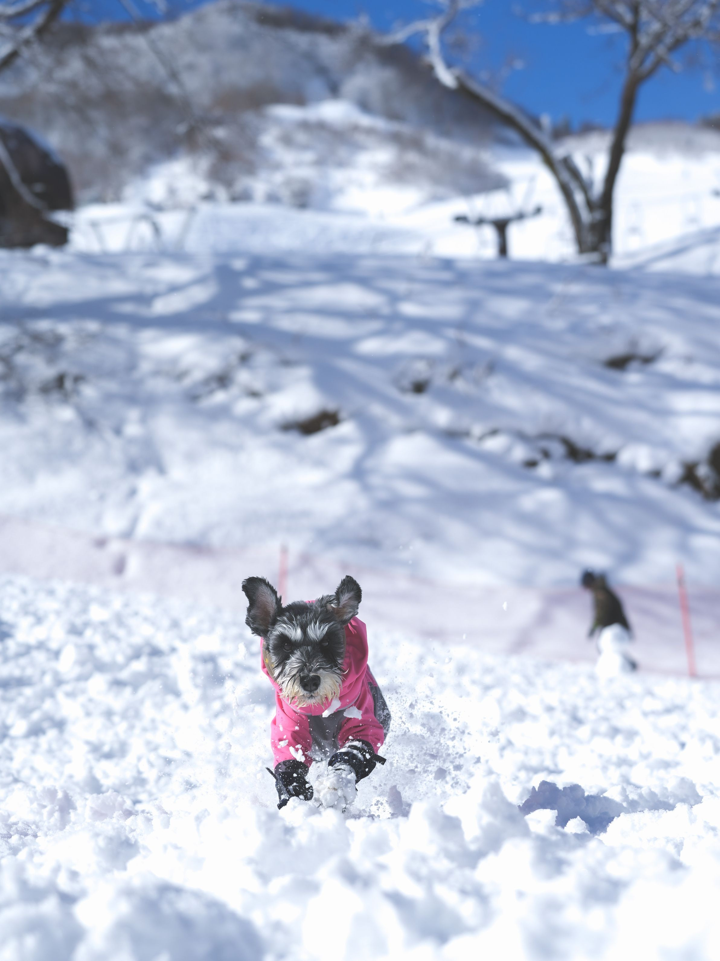 スキー場内にあるドッグランに行ってきました。天気も良く足に雪玉付けて走ってる愛犬を撮りました