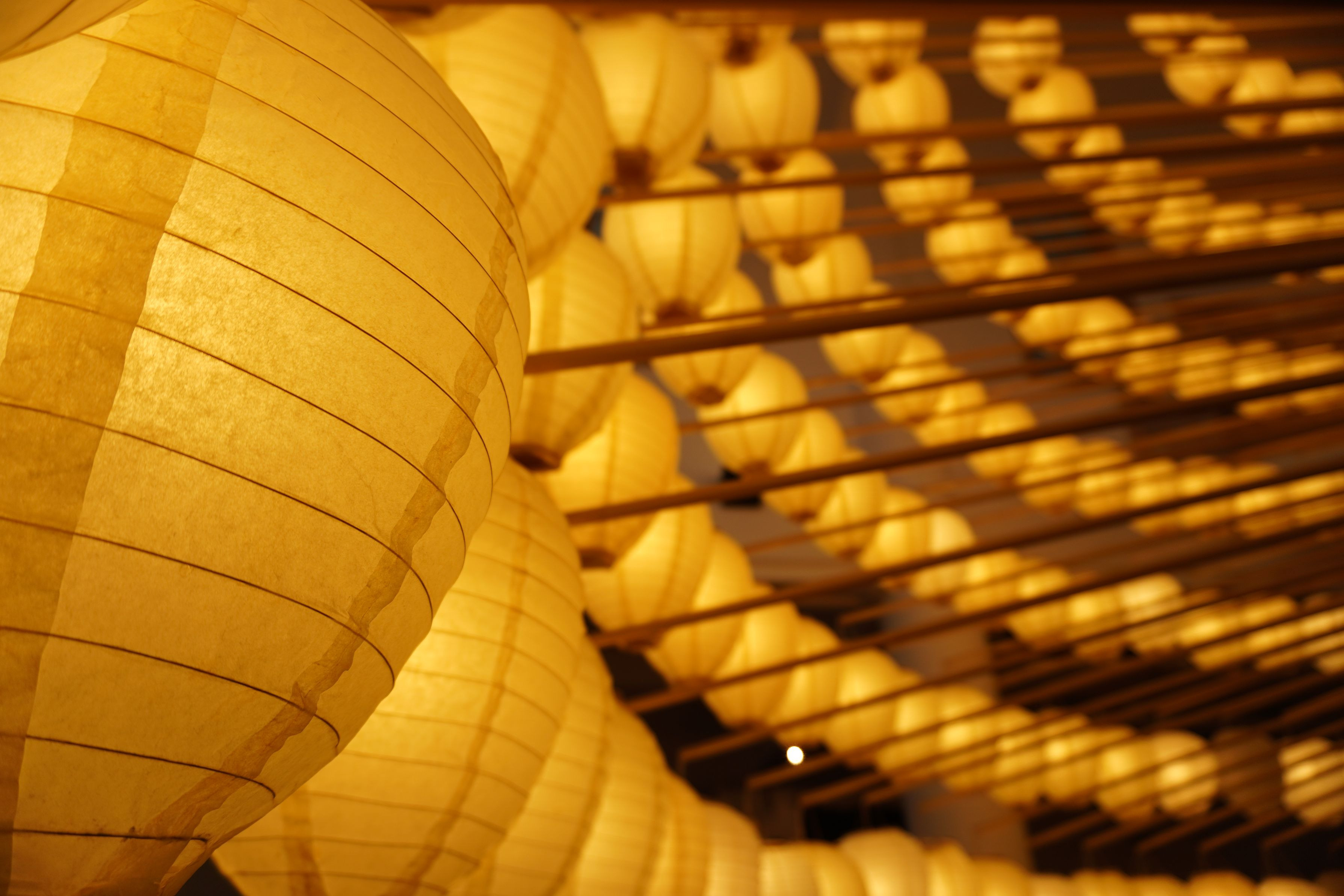 古い写真です。室内沢山提灯が飾られます。思わずシャッターを切りました😄