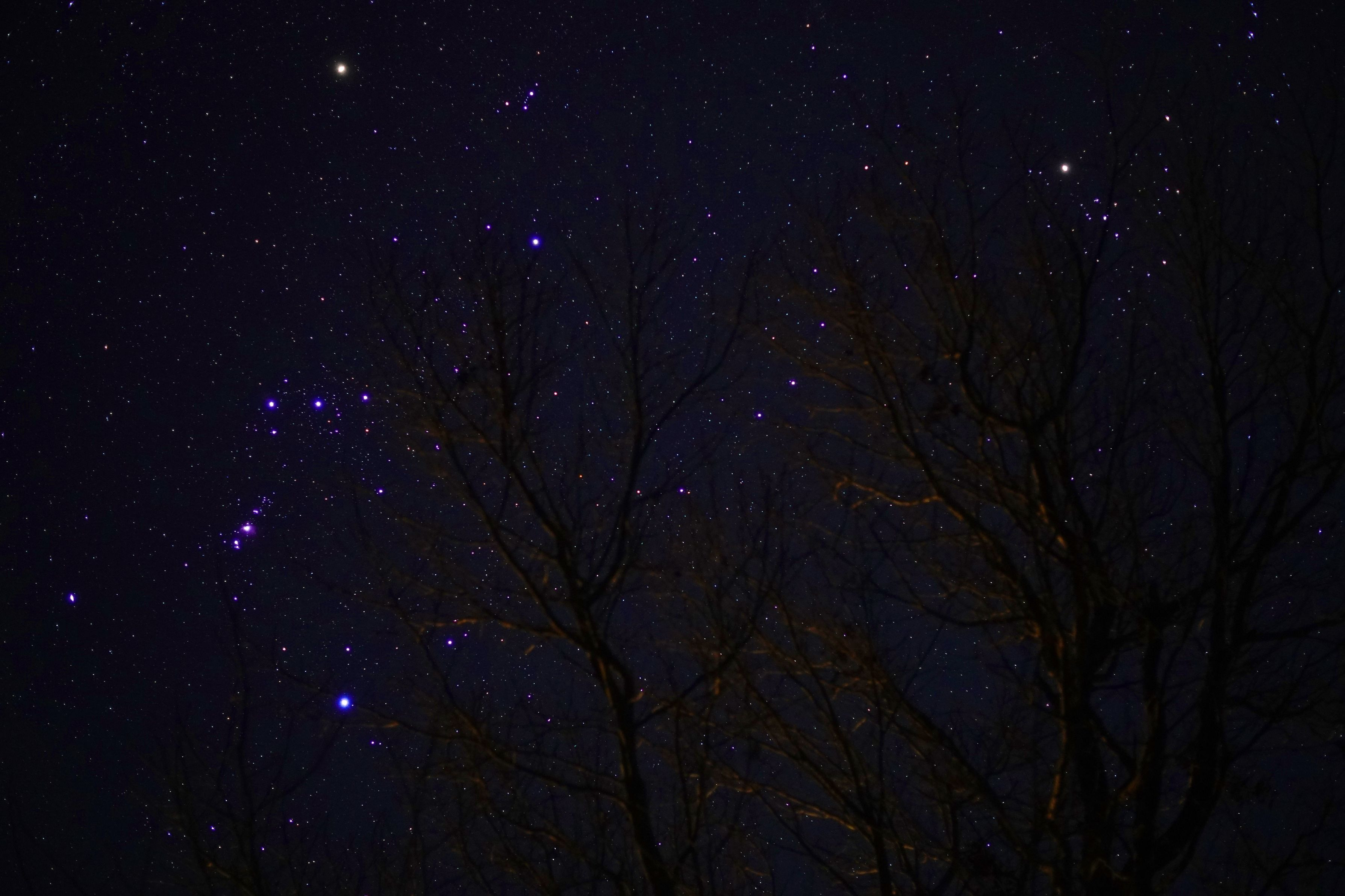 製品情報>My Sony>αcafe>白樺林に沈むオリオン座とヒアデス星団(Rinpooさん)
