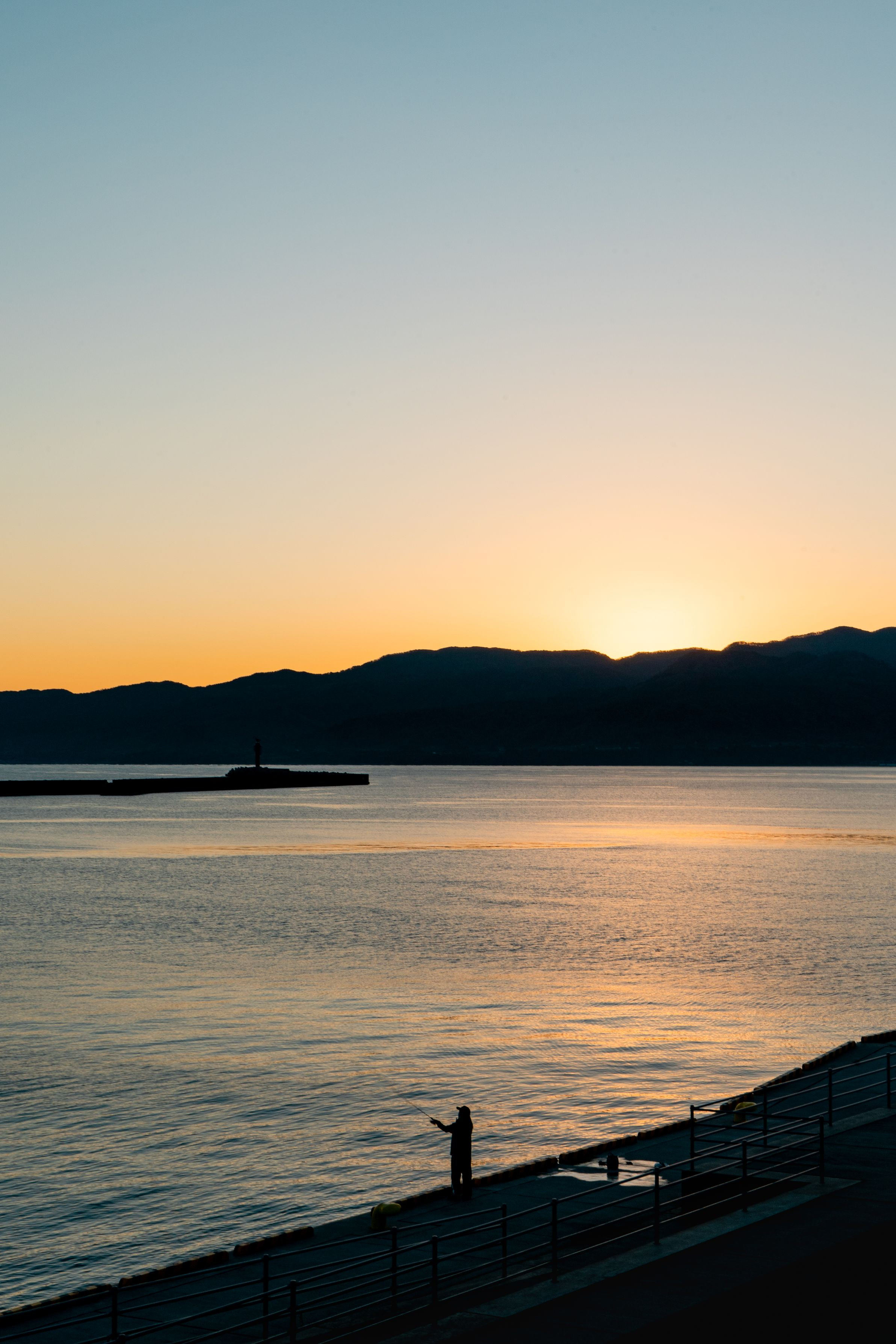 佐渡の冬はほとんど曇り空ですが、珍しく晴れた穏やかな朝。この後、何か釣れたようでした。